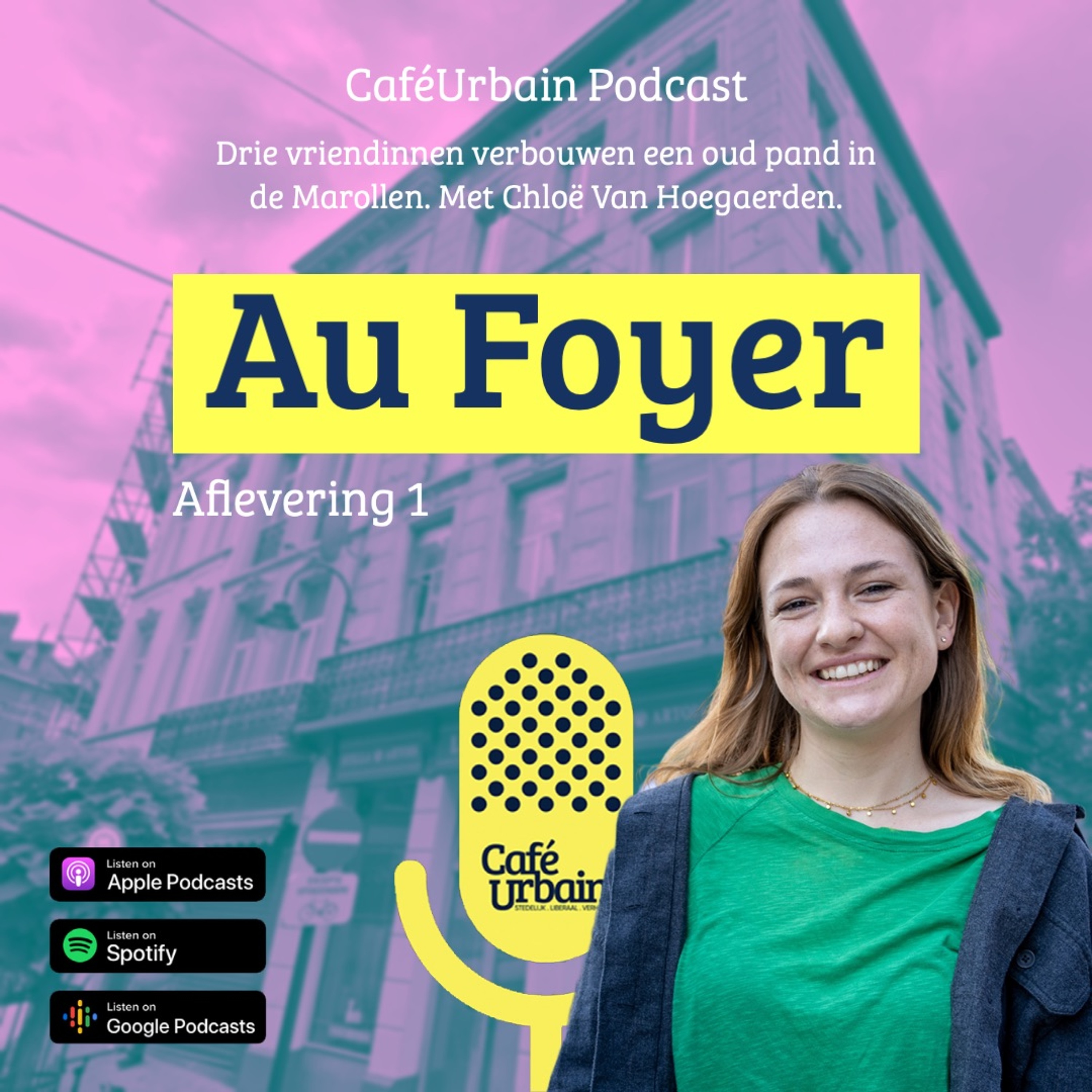 Ik ben Chloë Van Hoegaerden en in de podcast reeks 'Au Foyer' volg ik mijn vriendinnen in hun verbouwingen van een oud Brussels pand in de Marollen. De onderste verdieping van het gebouw stond vroeger bekend als café met de naam 'Au Foyer'. Vandaag verbouwen ze niet enkel deze horecazaak, maar ook de vier verdiepingen erboven: een cohousingproject met 3 appartementen en heel wat collectieve ruimte.