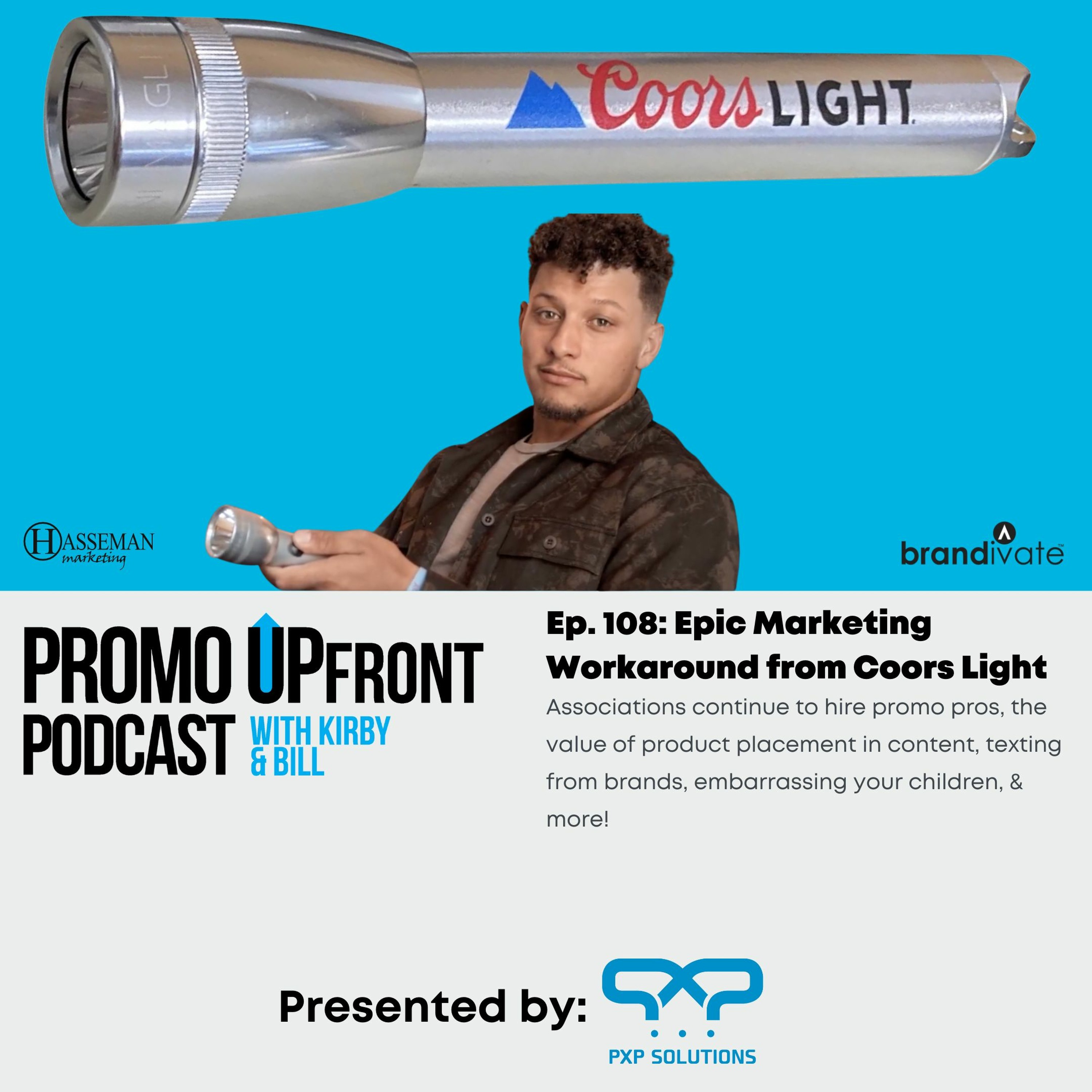 You know it’s Friday when Kirby Hasseman and Bill Petrie drop ep. 108 of the Promo UPFront Podcast! This week the mavens of marketing talk about the continued movement of associations hiring promotional professionals into key roles (we’re looking at you, John Cudahy), muse on whether product placement in content works, debate the merits of receiving texts from advertisers, applaud the Coors Light/Patrick Mahomes workaround to sell beer, and discuss the best ways they have embarrassed their children.