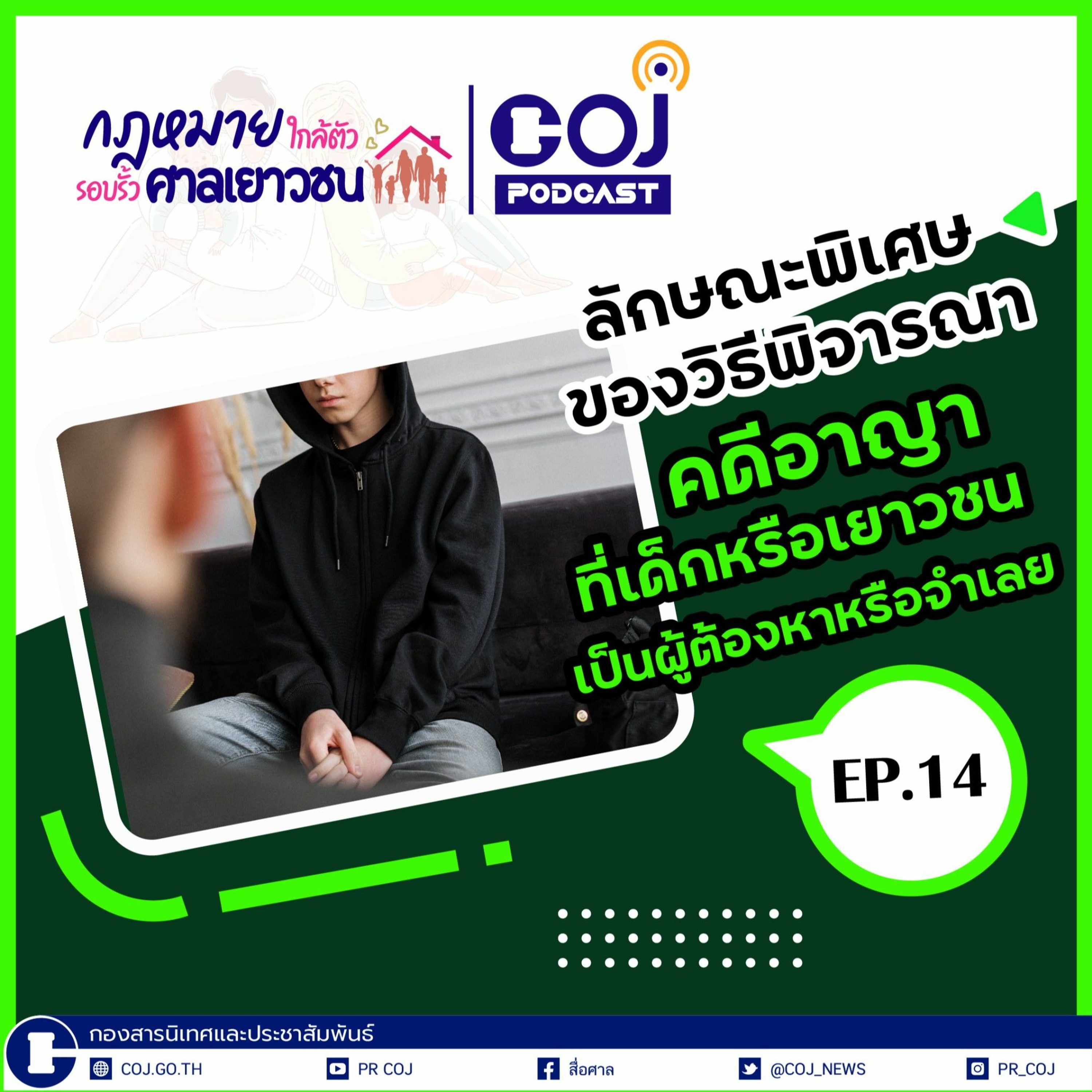 ชื่อคลิป : กฎหมายใกล้ตัว รอบรั้วศาลเยาวชน ep.14 ลักษณะพิเศษของวิธีพิจารณาคดีอาญาที่เด็กหรือเยาวชนเป็นผู้ต้องหาหรือจำเลย