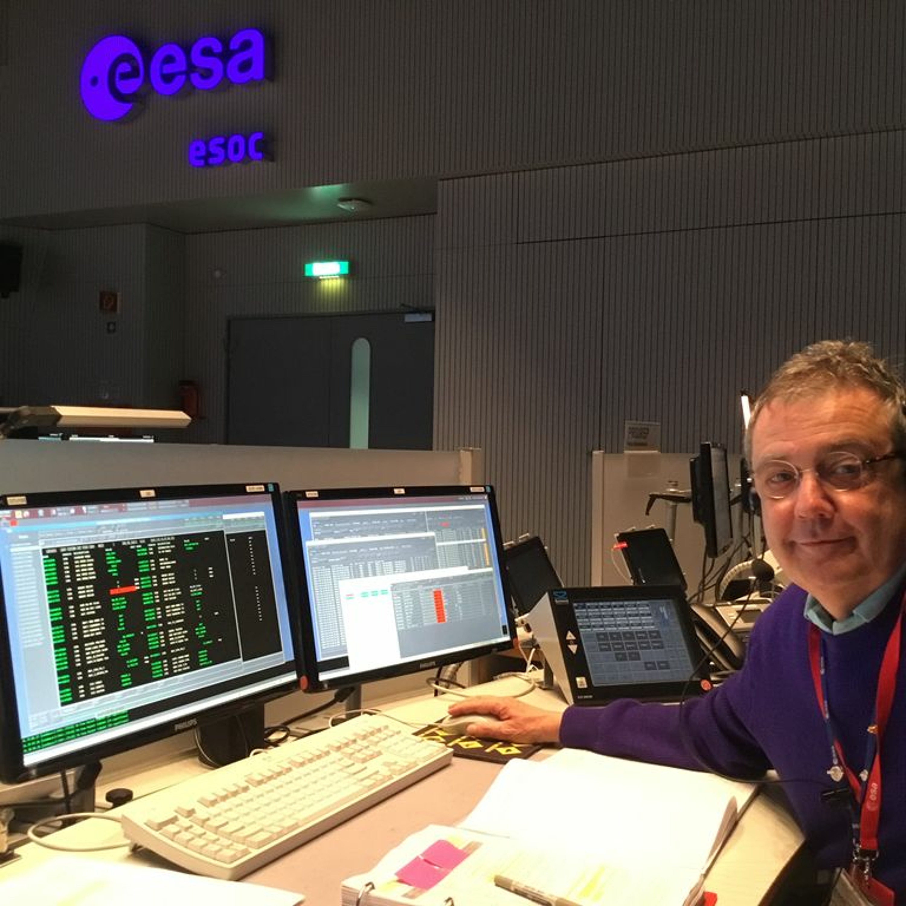 The Sentinel-1B GO/NOGO roll call in the Main Control Room at ESOC, ESA's European Space Operations Centre, Darmstadt, Germany. The roll call was conducted by Flight Director Pier Paolo Emanuelli at 21:42 CEST, just 80 minutes before lift off at 23:02 CEST (21:02 UTC), 25 April 2016. Image credit: ESA
