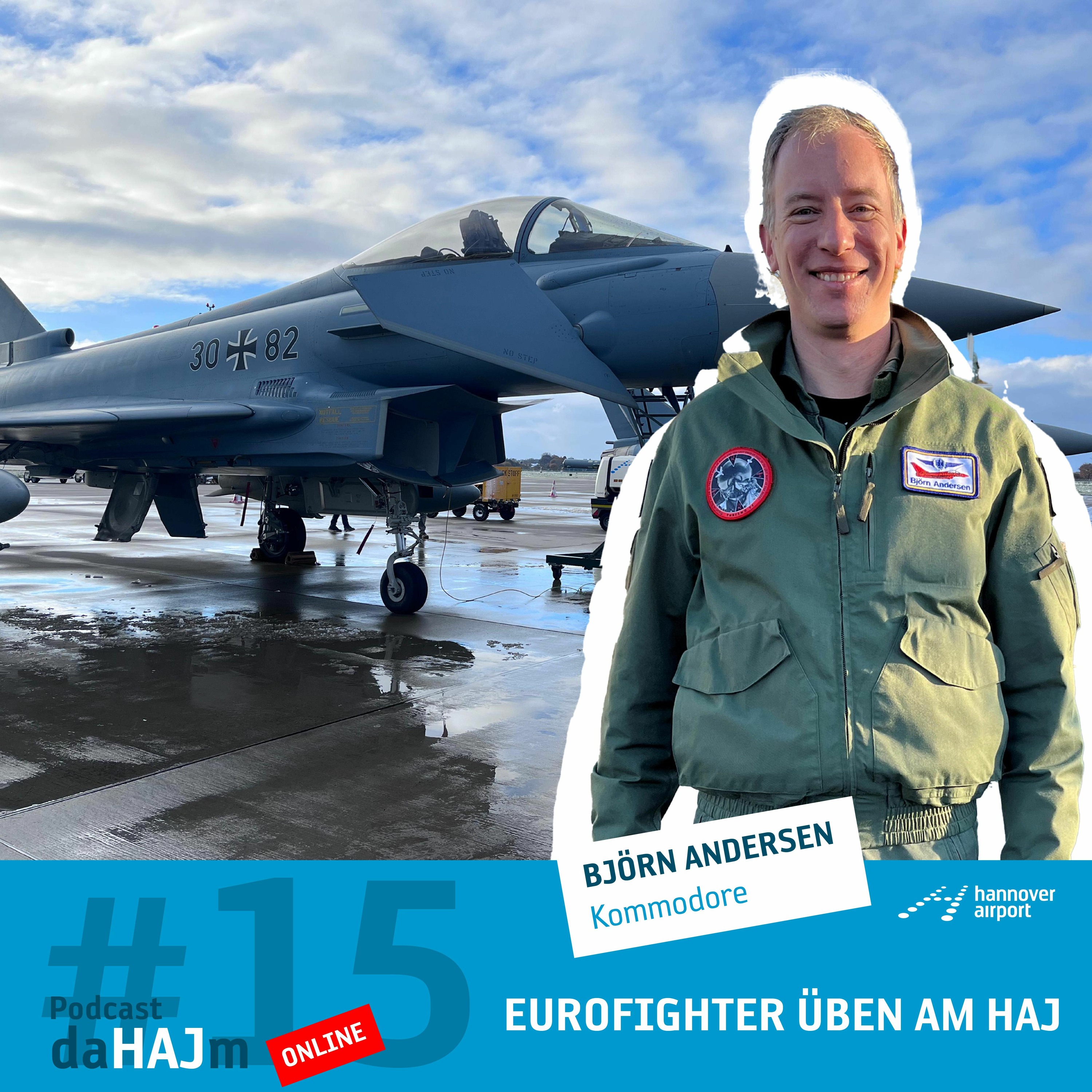 Eurofighter im Einsatz am HAJ. Als Ausweichflughafen für die Alarmrotte der Luftwaffe muss der Hannover Airport 365 Tage im Jahr auch Militärflüge abfertigen können. In dieser Folge gibt Jet-Pilot Kommodore Oberst Björn Andersen Einblicke in die Übung "Hannover Shield 2023" und die Abläufe am Airport.