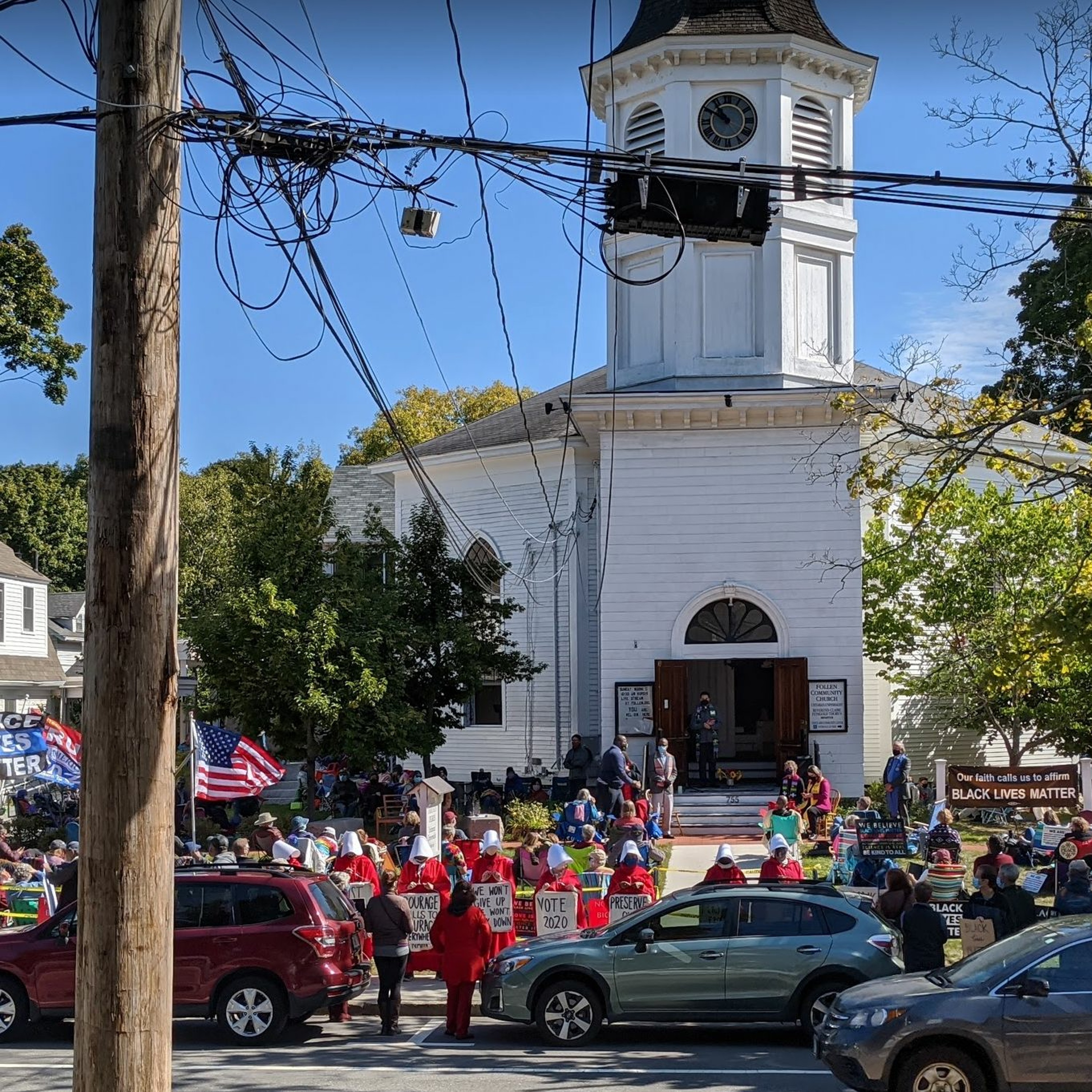 Walk with Boston Red Cloaks and listen in as we participate in a peaceful anti-racism gathering held in support of Follen Church, a Massachusetts congregation that was targeted by a racist hate group - seemingly because Follen prominently posts a Black Lives Matter banner at their church. Red Cloaks carried signs reading #SayHerName with names of some of the Black women who have been unjustly killed: Breonna Taylor, Dominque Fells, Brayla Stone, Vanessa Guillen, Oluwatoyin Salau, Merci Mack, Riah Milton, along with signs reading "We are in this together" and "Courage calls to courage everywhere." Justice Ruth Bader Ginsburg died two days prior; this was the first in-person gathering of the Boston Red Cloaks since COVID shut down most day-to-day life in Massachusetts in March. With members across the state of Massachusetts, a member alerted the Boston Red Cloaks, and those who were able came out as an anti-racism action. In addition to congregants, more than 150 people lined both sides of the street with Black Lives Matter signs, and messages of love and kindness. Note that all members wore masks throughout, which may be audible. Following this event, the group continued to Concord. Look for: "Walk With Us Part 2"