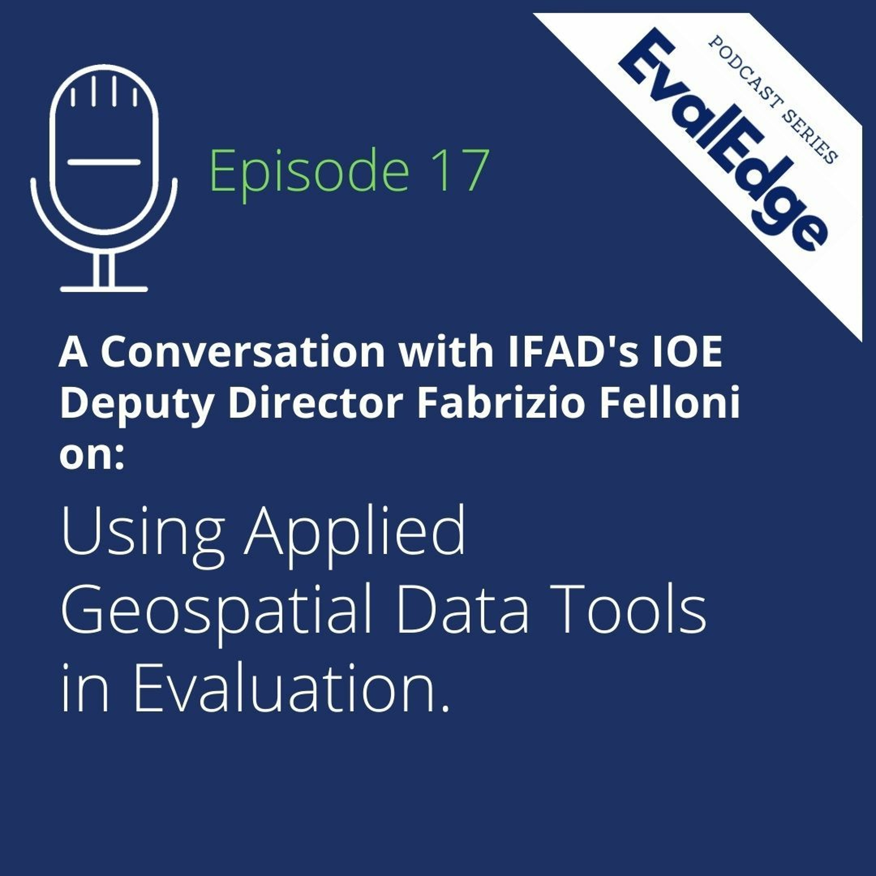 In this episode we speak with IFAD's IOE Deputy Director Fabrizio Felloni about IFAD's experience in using innovative technologies like geospatial data in evaluation. For further information, see IFAD IOE recently published guideline “Geospatial tools and applications to support IOE". This episode features Podcast team members Alena Lappo and Valentine Gandhi.
