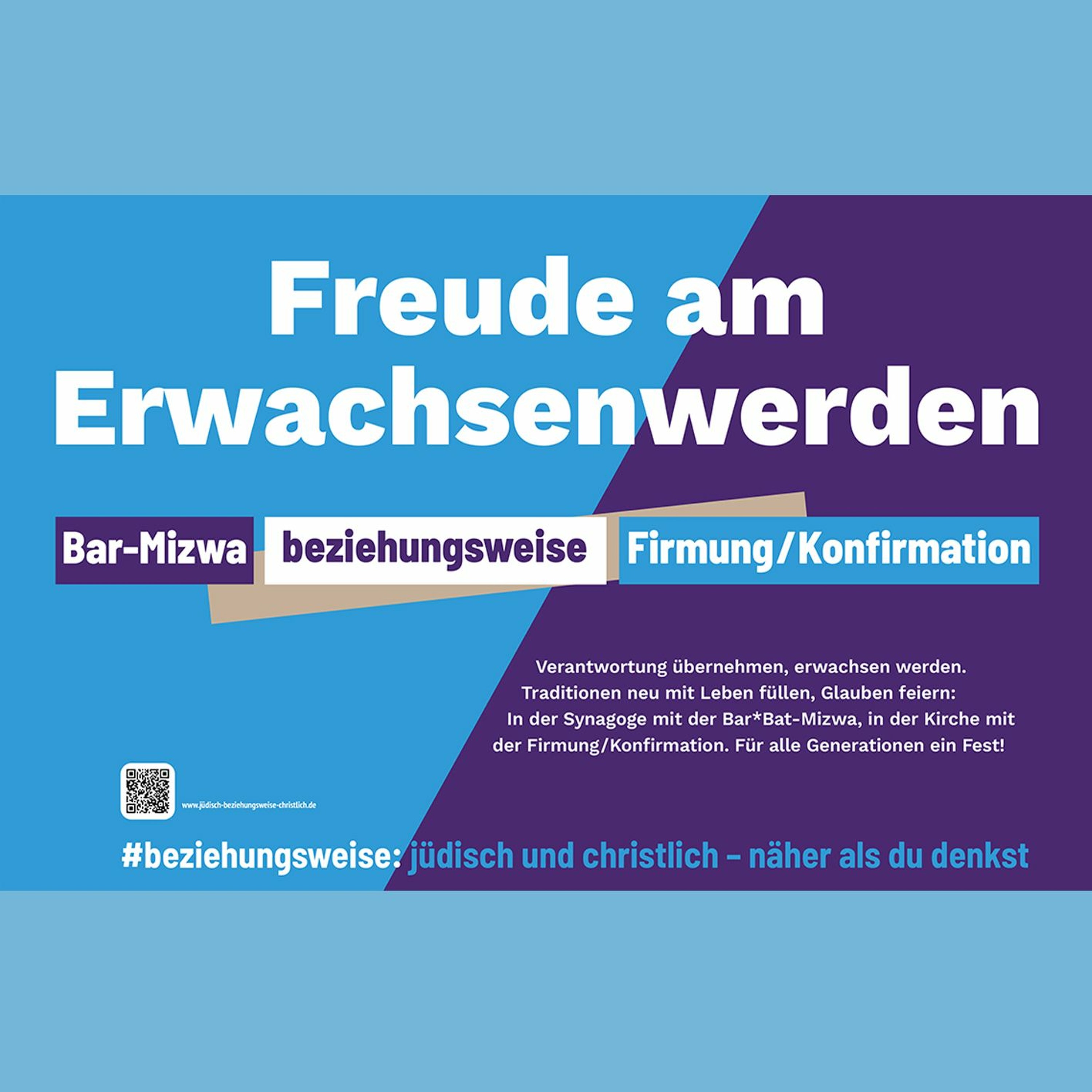 Verantwortung übernehmen, erwachsen werden. Traditionen neu mit Leben füllen, Glauben feiern: In der Synagoge mit der Bar*Bat-Mizwa, in der Kirche mit der Firmung/Konfirmation. Für alle Generationen ein Fest!