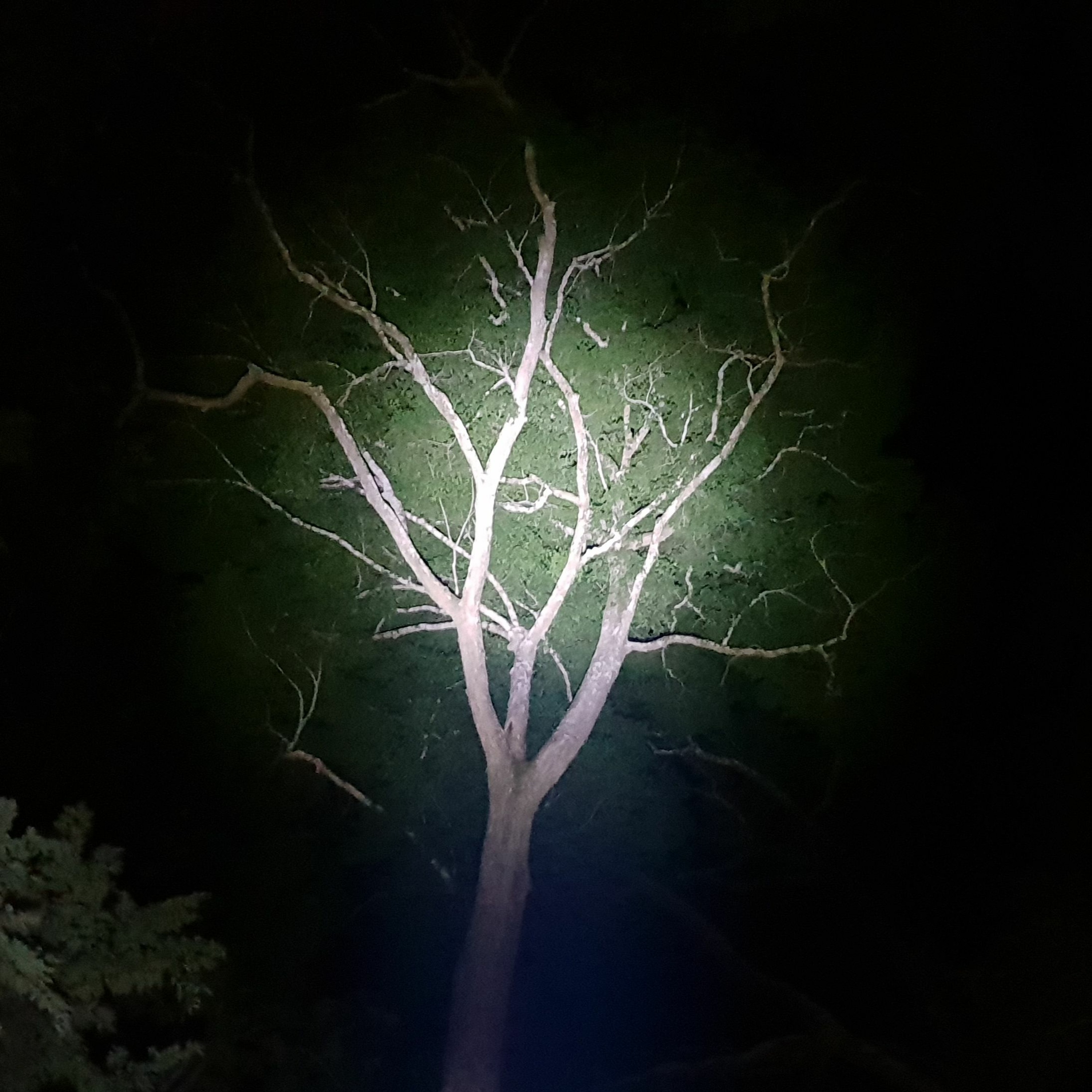 Hornbills, turacos and parrots making a racket at a clearing in the forest. Lovely echoes from the treeline.