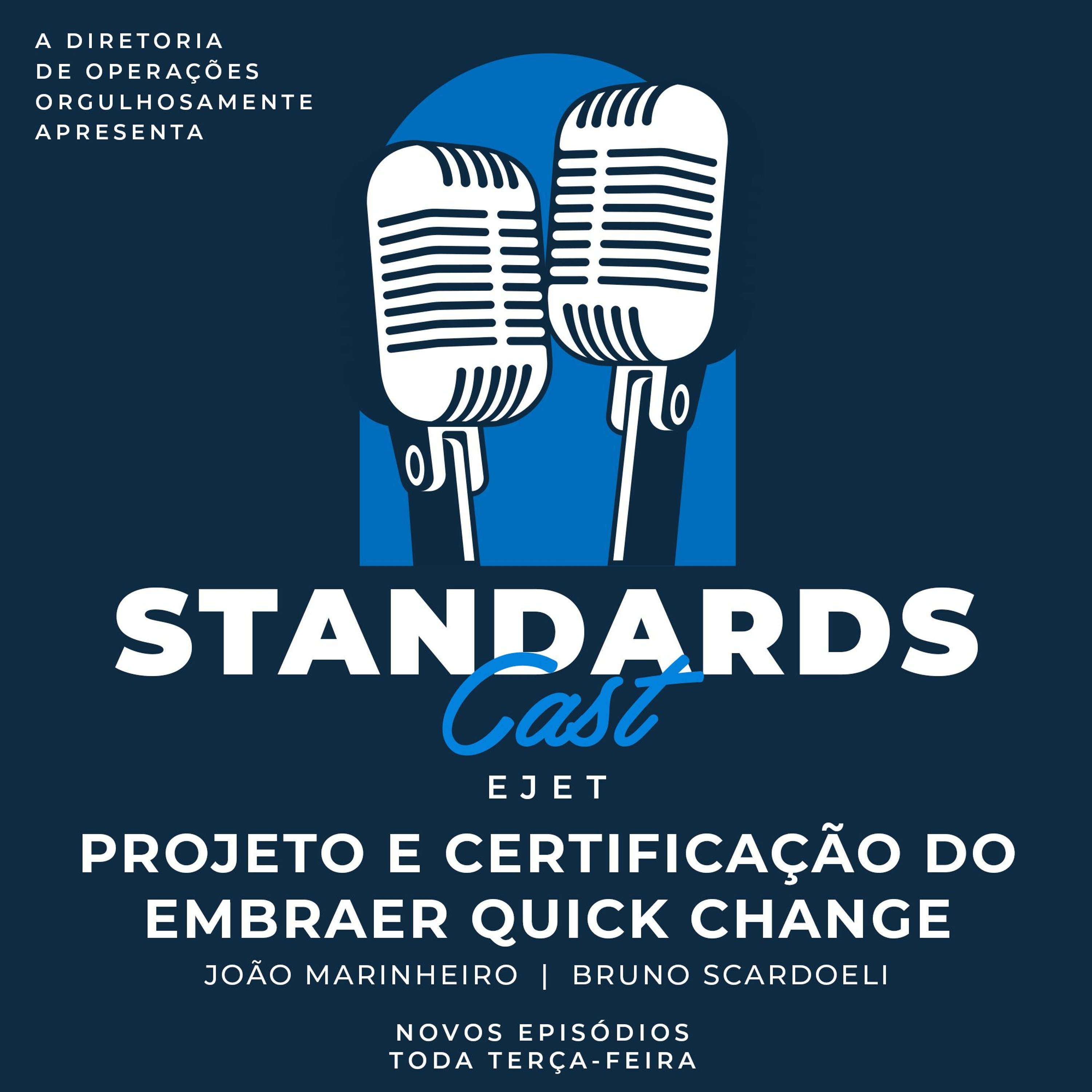 Olá, seja muito bem-vindo ao StandardsCast EP #133 EJET. Neste episódio conversamos com João Marinheiro (Gerente de Flight Standards) e Bruno Scardoeli (Assistente de Flight Standards EJET) sobre a certificação e os bastidores do projeto do primeiro Embraer Quick Change do mundo. Inicialmente, entendemos a necessidade da conversão do modelo E1 para a versão cargueira, oportunidade que surgiu durante a pandemia onde a demanda por cargas aumentou significativamente. Falamos também das diferenças entre os modelos E1 e E1 cargueiro, do QRC e QRHs que foram adicionados e dos principais pontos de atenção quando realizando esta operação, que é uma novidade para o grupo de voo do Embraer.