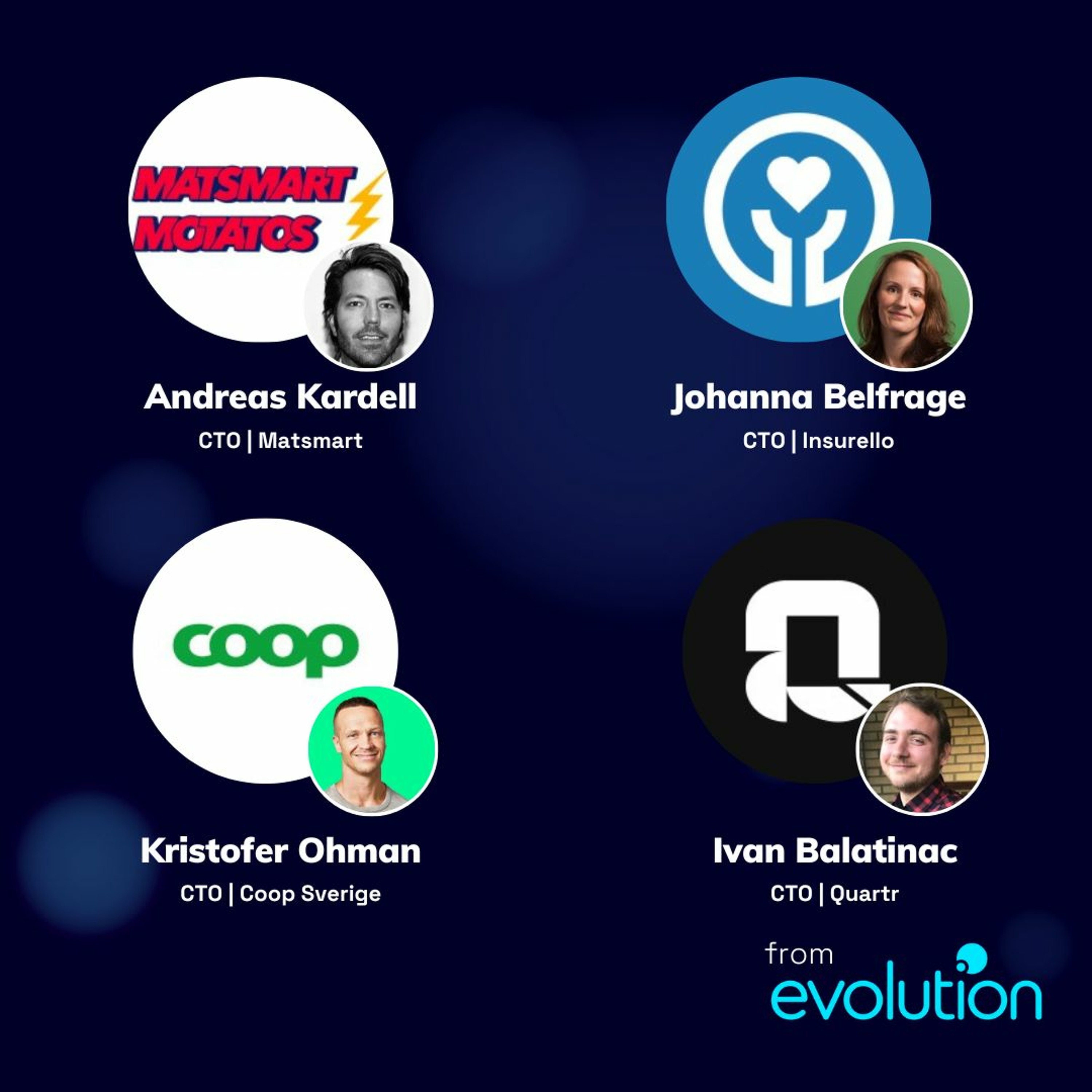 And today's guests are: Ivan Balatinac - CTO - Quartr Kristofer Ohman - CTO - Coop Sverige Johanna Belfrage - CTO - Insurello Andreas Kardell - CTO - Matsmart
