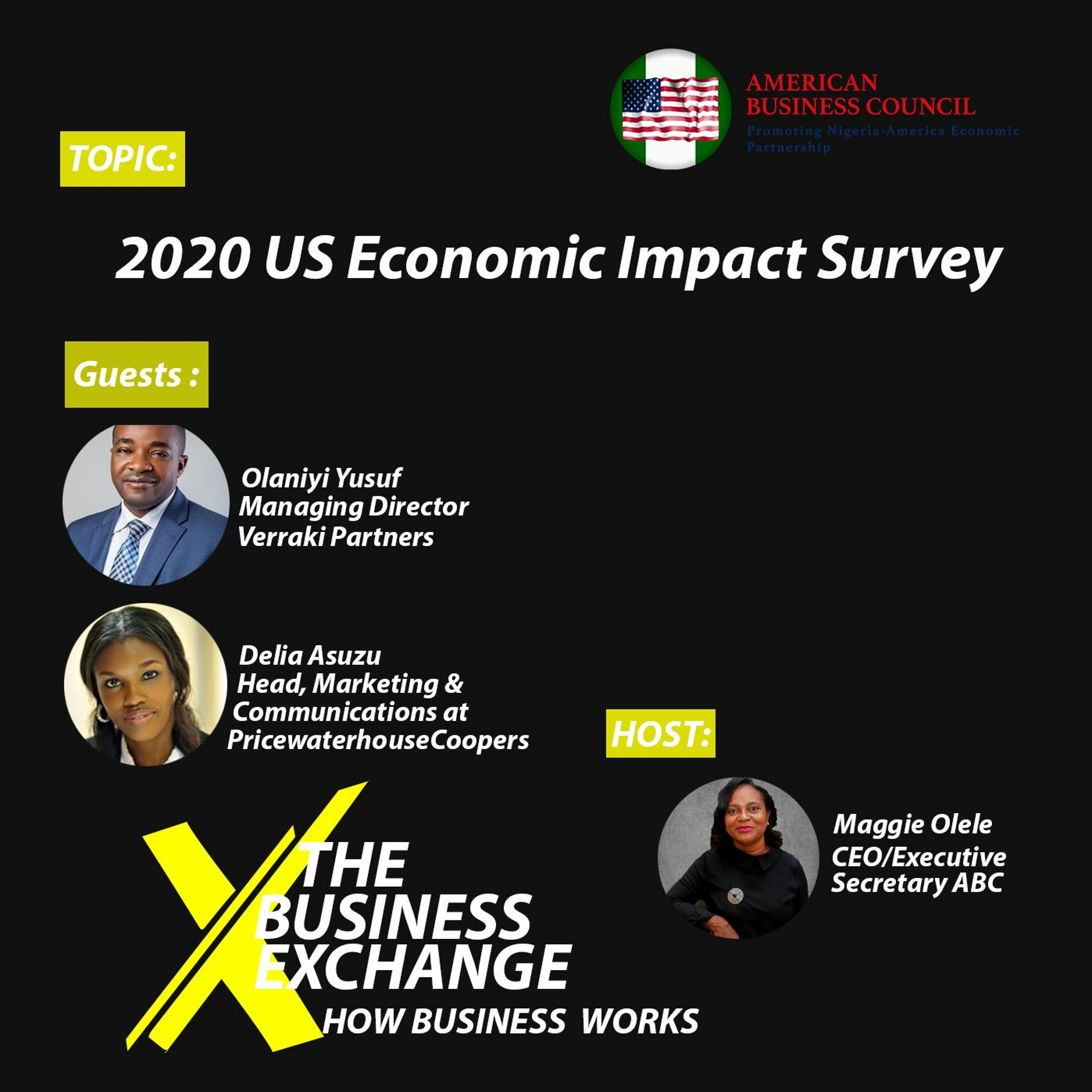 On today's episode, Delia Asuzu of PwC Nigeria & Olaniyi Yusuf of Verraki Partners share updates and insights with Maggie on the 2020 Economic Impact survey of US companies in Nigeria.