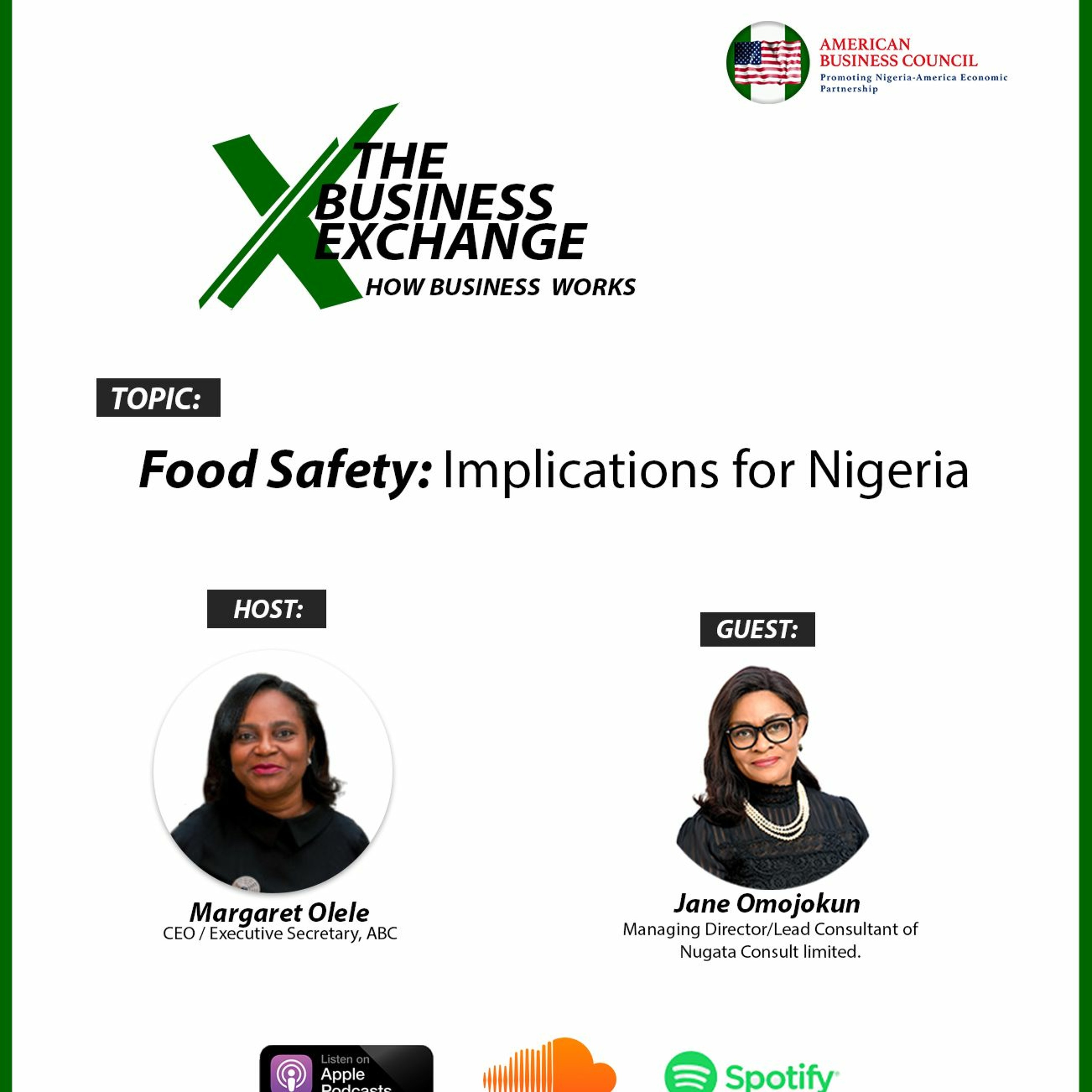 In this episode Maggie discusses Food Safety: Implications for Nigeria with Jane Omojokun. The world celebrated Food Safety this month with the theme “safer food, better health”, yet food shortages no thanks to global crisis and natural disasters threaten access to Food in general and safe food in particular. This in turns creates health challenges that continue to pile pressures on governments. Standards, Policies and Bills that will help nurture a good Food Safety system in Nigeria will be great and will help Nigeria address some challenges around non- oil export. Our guest is Jane Omojokun, a former director of regulation for the National agency for Food drugs, Administration and Control ( NAFDAC) and was the head of the Codex Alimentarius and SPS desk for 18 years. She is the managing director for Nugata Consult