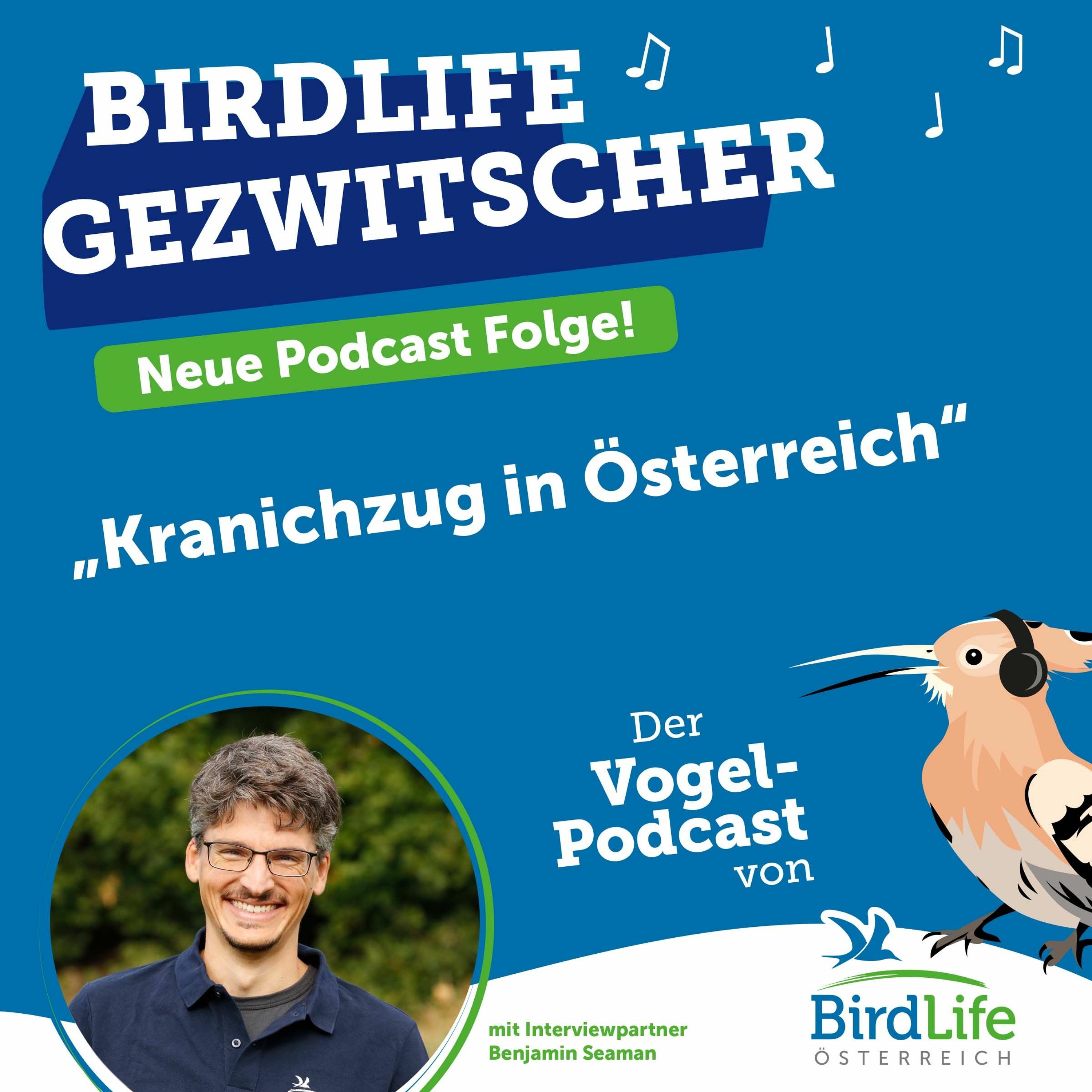 Wo ziehen Kraniche? Brüten sie auch in Österreich? Und wozu dient ihr Trompeten in der Nacht? In dieser Podcastfolge stellt BirdLife-Mitarbeiter Benjamin Seaman den Kranich vor und geht dabei intensiv auf den Kranichzug in Österreich ein.
