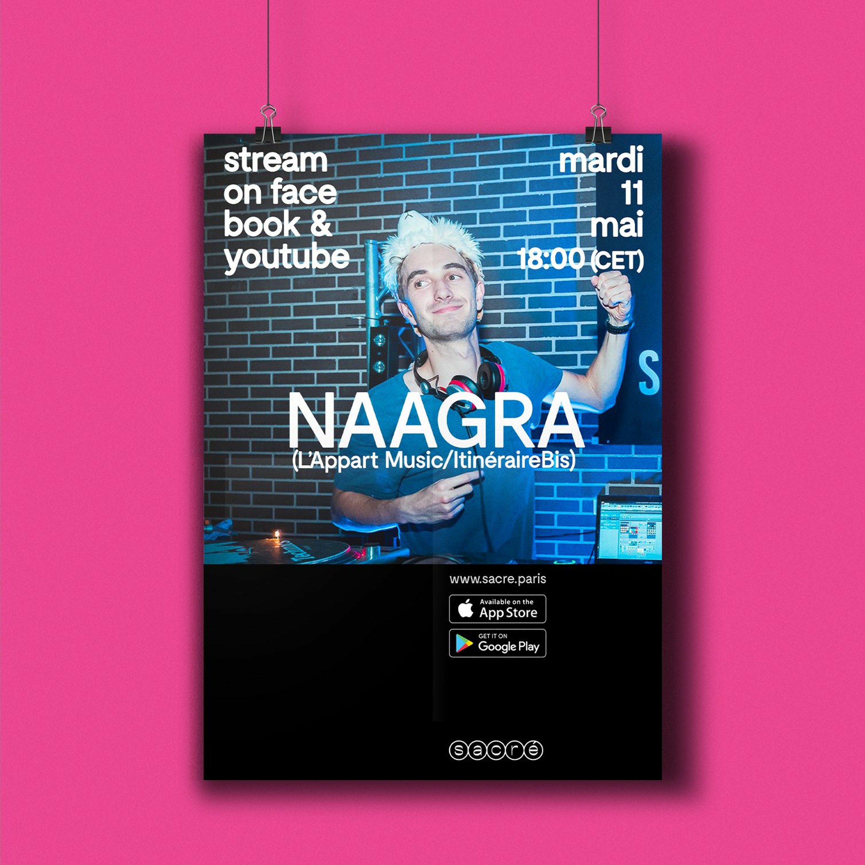 On accueille aujourd'hui le renard des surfaces des platines, toujours plein d'energie, techniquement irréprochable et avec une sélecta de killer : Naagra ! Il est avec nous ce soir pour un set house/hi-tempo/break/rave qui - on peut le dire - a secoué le Sacré ❤
