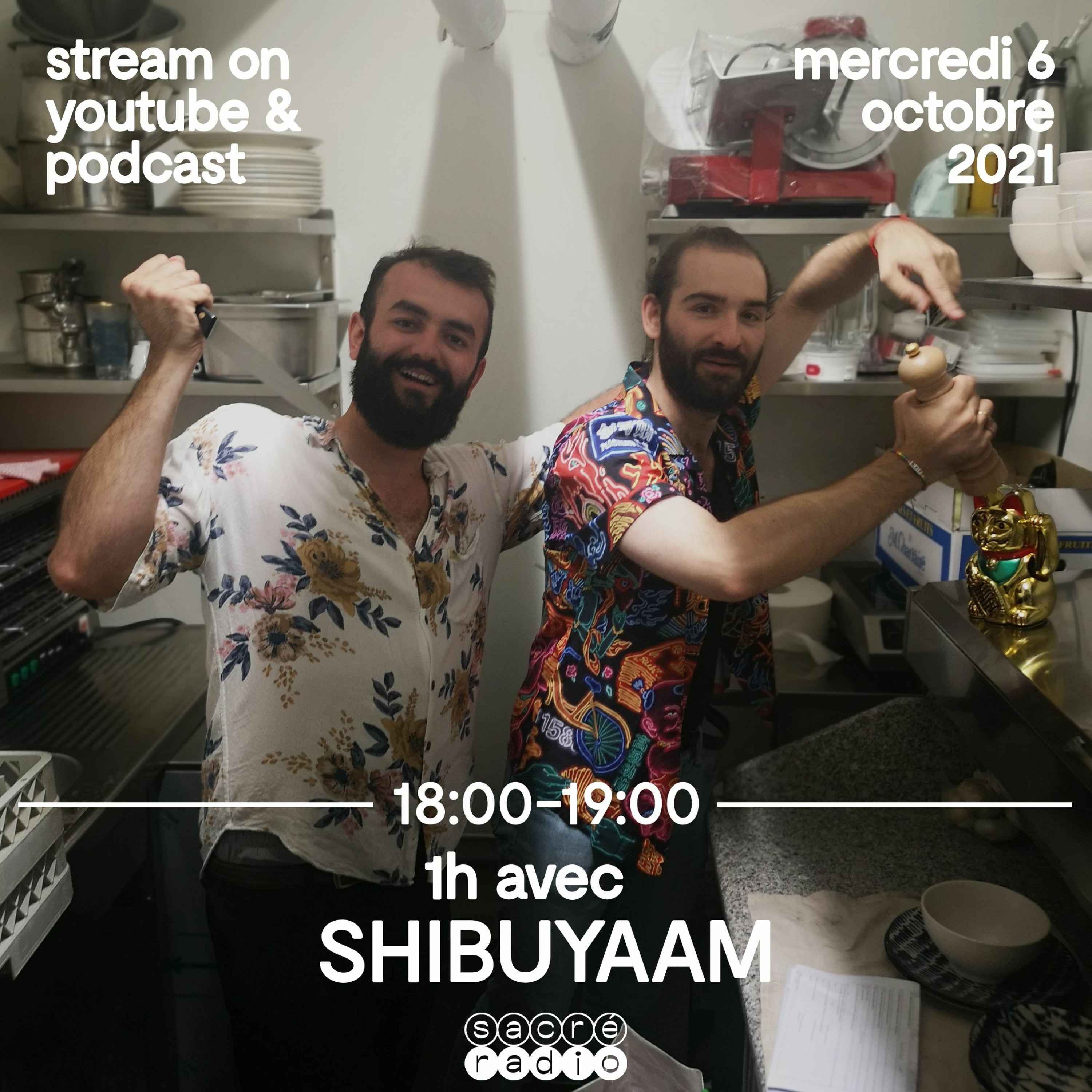 Le duo Shibuyaam, composé de Shibuya793 & Yaam, les 2 fondateurs du collectif Hanabi. Organisateurs de teufs invétérés, les 2 compères passent jouer des disques sur Sacré Radio en marge de leur soirée au Point Éphémère du samedi 9 octobre.