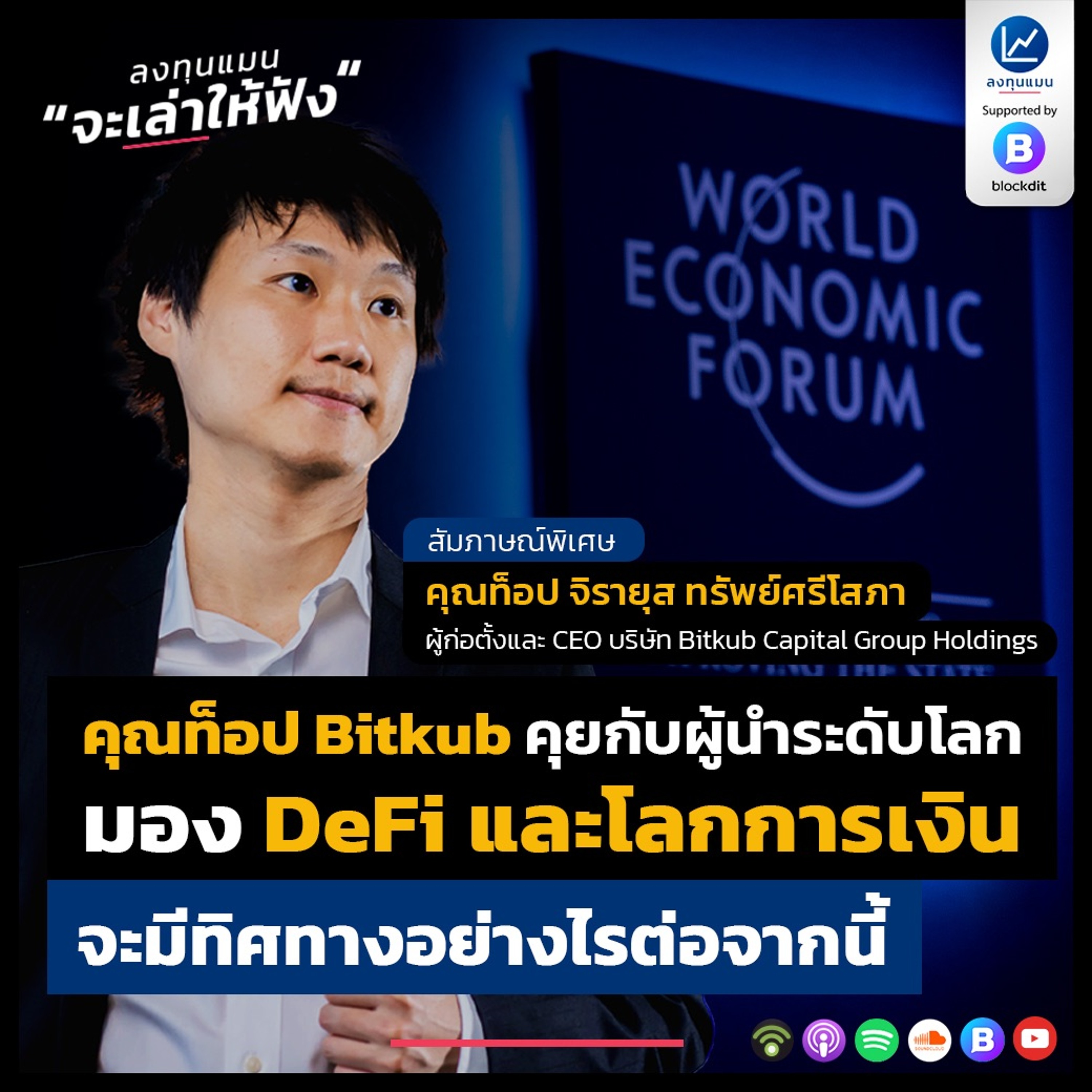 ลงทุนแมนชวน คุณท็อป จิรายุส ทรัพย์ศรีโสภา ผู้ก่อตั้งและ CEO บริษัท Bitkub Capital Group Holdings ตัวแทน Starup ไทยที่ได้รับเชิญไปร่วมงาน World Economic Forum 2022 มาร่วมพูดคุยกัน