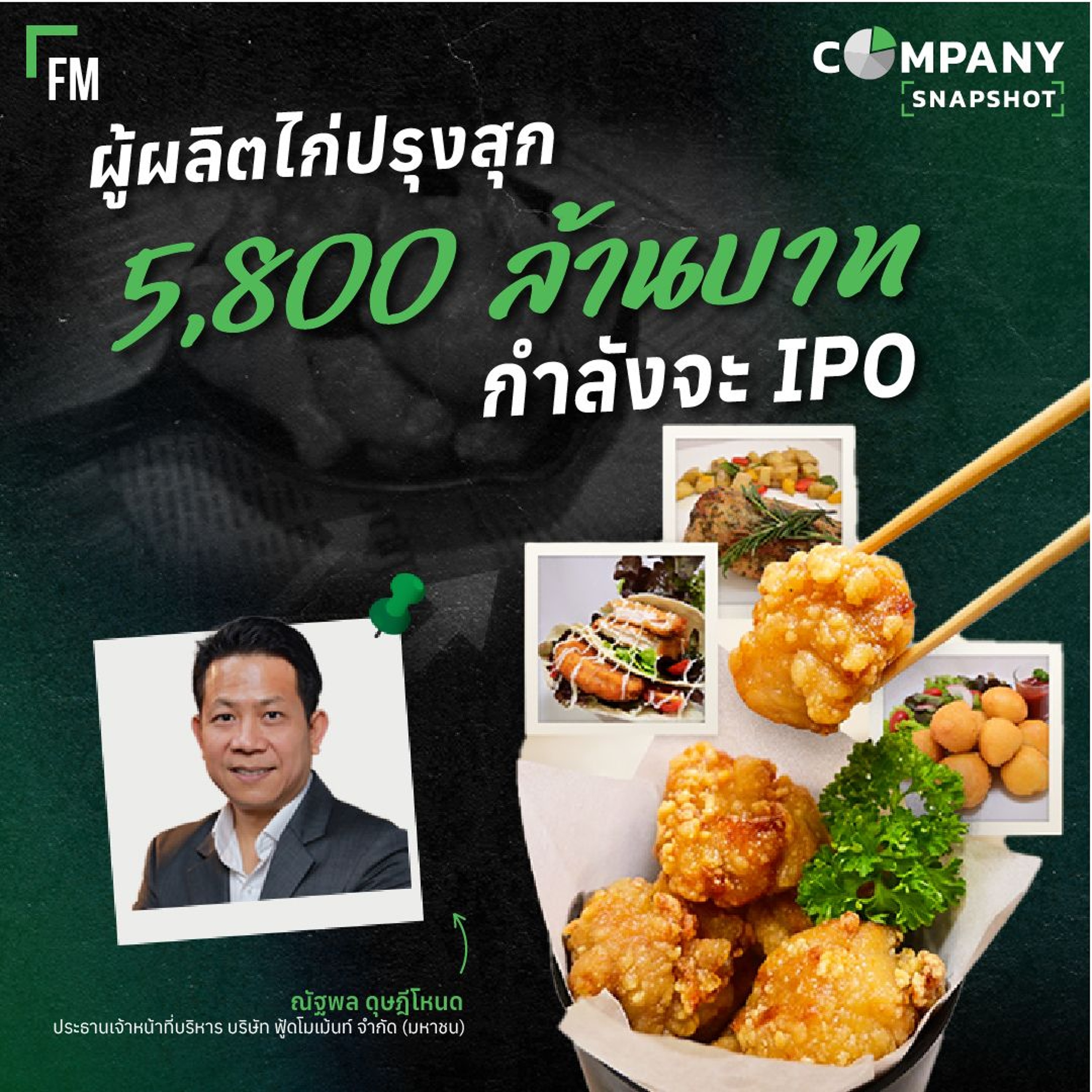 Company Snapshot ชวน คุณณัฐพล ดุษฎีโหนด ประธานเจ้าหน้าที่บริหาร บริษัท ฟู้ดโมเม้นท์ จำกัด (มหาชน)