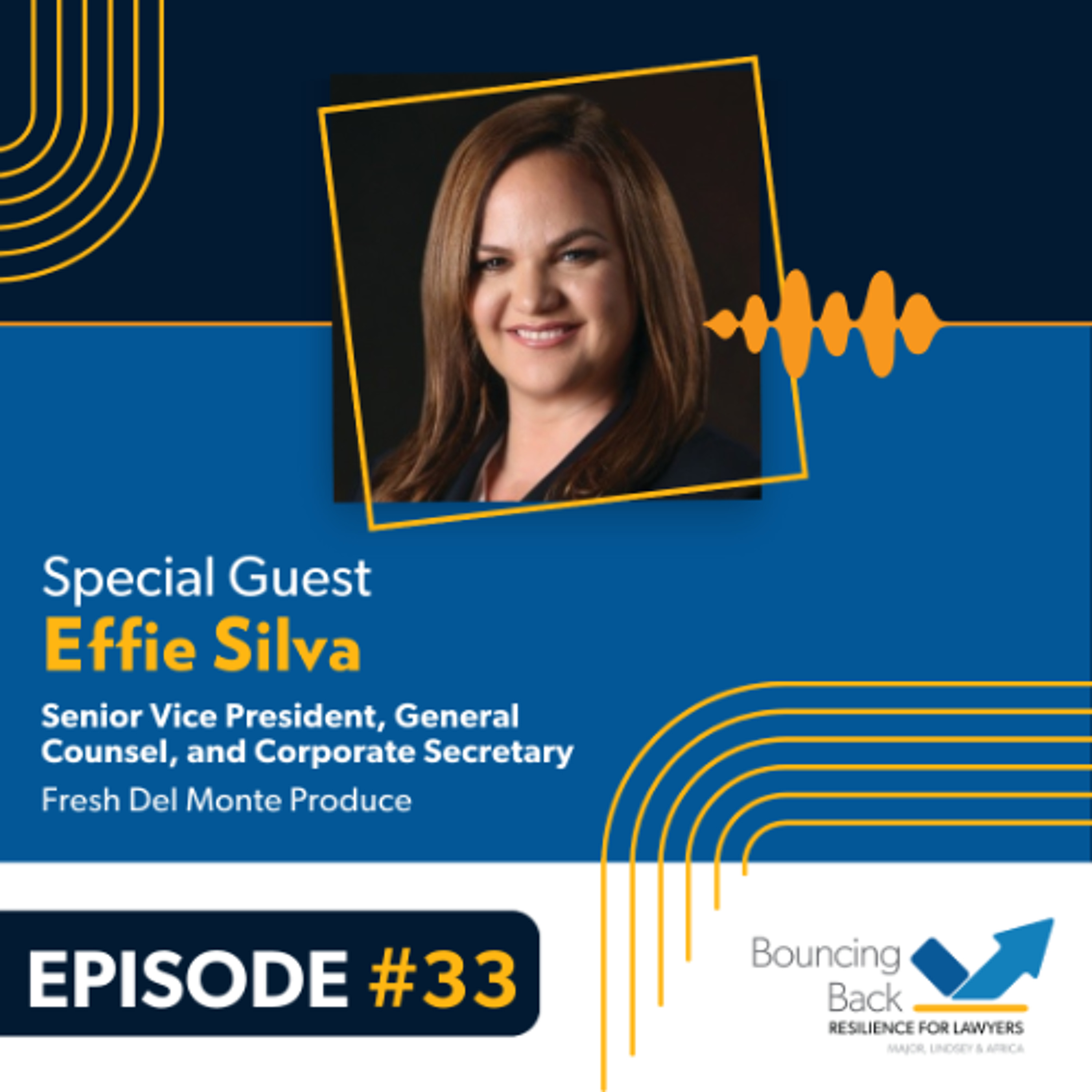 From her early days as a competitive collegiate athlete to becoming a leading figure in the legal industry, Effie Silva, Senior Vice President, General Counsel, and Corporate Secretary of Fresh Del Monte Produce, has faced numerous challenges and setbacks. One pivotal moment in her career was when she was on track to make partner at a law firm but ultimately did not. This experience, though initially disheartening, became a turning point for Effie. Listen in as she shares with host Rebecca Glatzer how she adopted a mindset that things do not happen to you, they happen for you, which propelled her to reassess her goals and strategies and led to a highly successful in-house career.