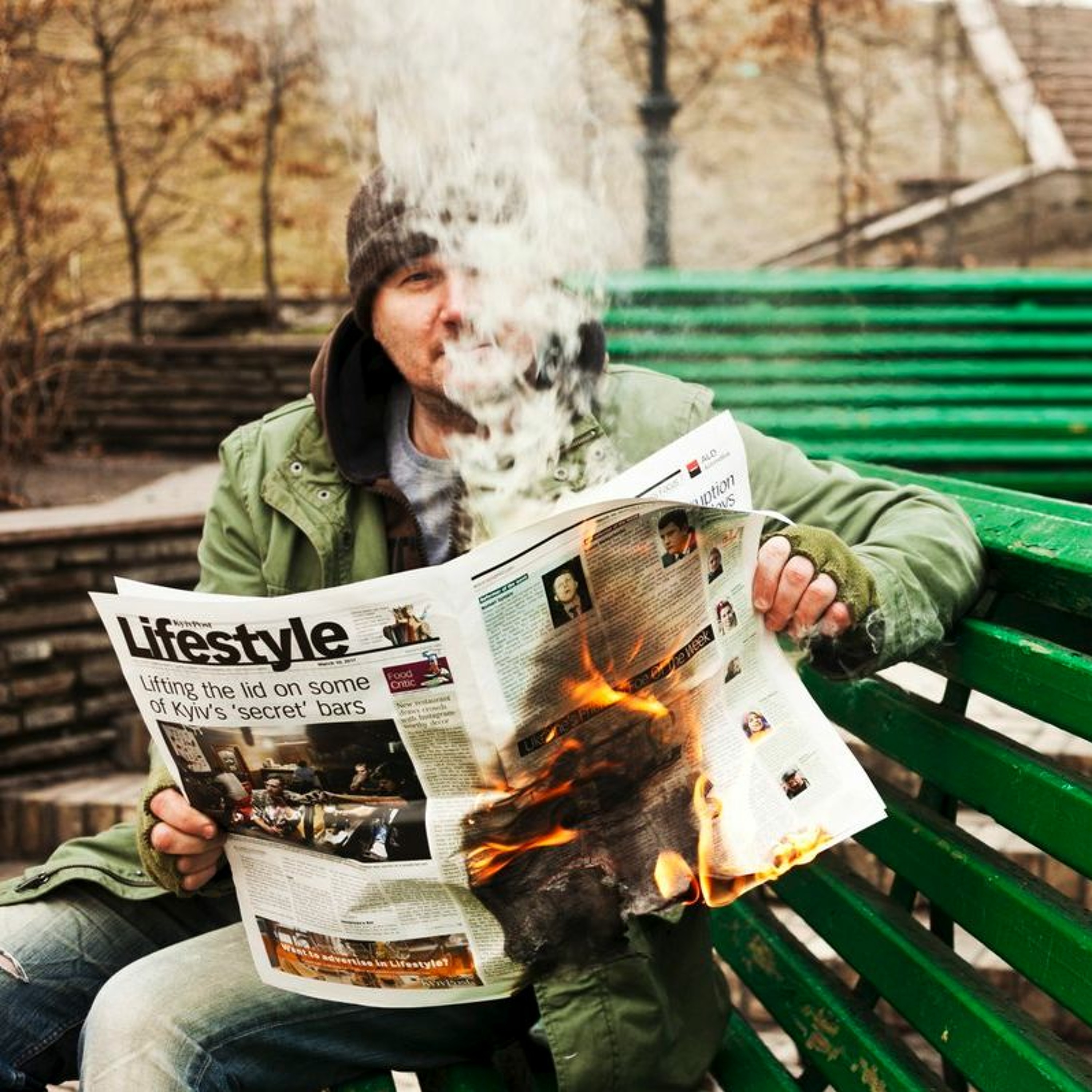 "Not unlike my previous works, the concept of this piece is simple though deeply personal. The whole story is about this series of strange purchases that happened many years ago. Mid 90s’ Kyiv, hard & depressive years just after the crush of the USSR. A friend of mine was always keen on fancy clothes, famous brands (mostly US) that were hard to buy, over-priced or just unavailable in early post Soviet Ukraine. Once or twice he took me to this weird place – it was dark, cold, barely-lit secret warehouse, I guess half-legal, full of massive dusty boxes with smuggled, discounted, often out-of-fashion jeans, shirts and jackets. Some of the things were really ugly and weird, overpriced. A few finds (after a couple of hours hunting) can be really nice and rather cheap, so we bought them. The whole process was full of digging tons of stuff, monitoring, conspiracy, hunting-tremor close to obsession. We were young, poor and creative. I still can recall almost everything single piece we bought there, many of those I have already heavily worn-out these days. The spiritual and sad side of the story is the early and tragic death of my friend in 2006. Comparing to old shabby clothes we bought together, the friend of mine passed away in his 30-ies and today he’still much younger than me. When I came across that old stuff the same thought comes again and again: “I’m getting older with my things, really older but he isn’t”. So it’s all about the material getting older and the eternal youth of the soul."