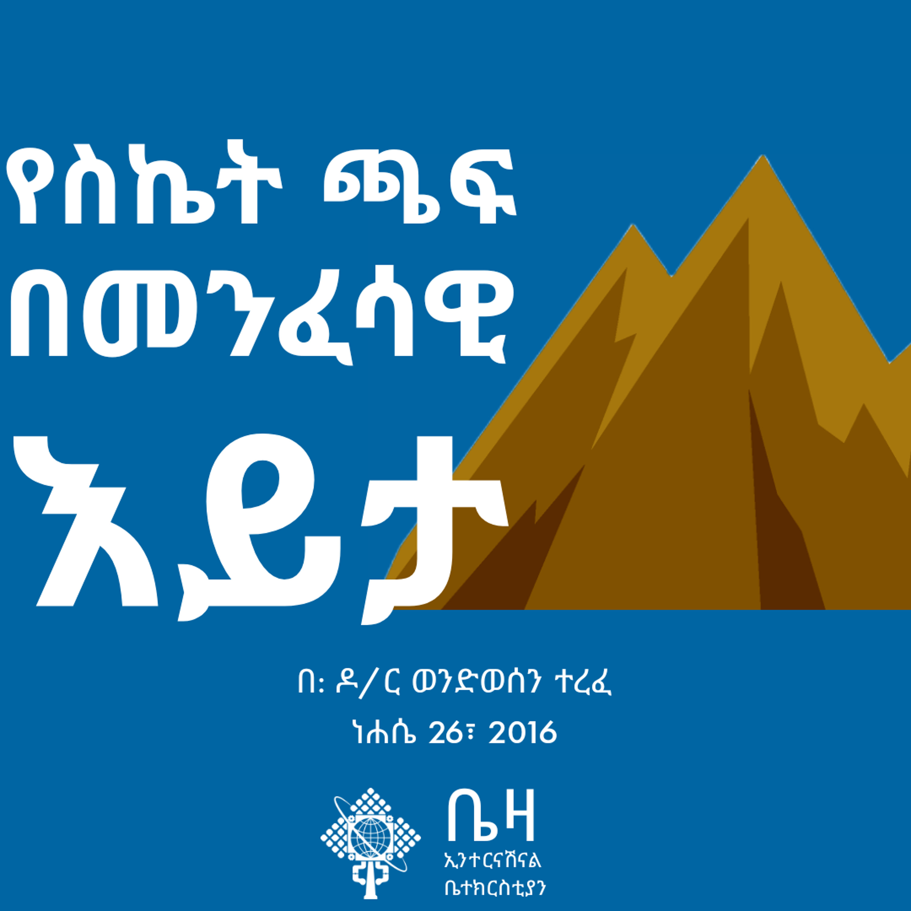የስኬት ጫፍ በመንፈሳዊ እይታ በዶ/ር ወንድወሰን ተረፈ ነሐሴ 26 2016 Beza International Church Addis Ababa Ethiopia https://linktr.ee/bezachurch www.bezachurch.org Twitter: @Beza_Ministries Facebook, Telegram, and Instagram: @Bezachurch