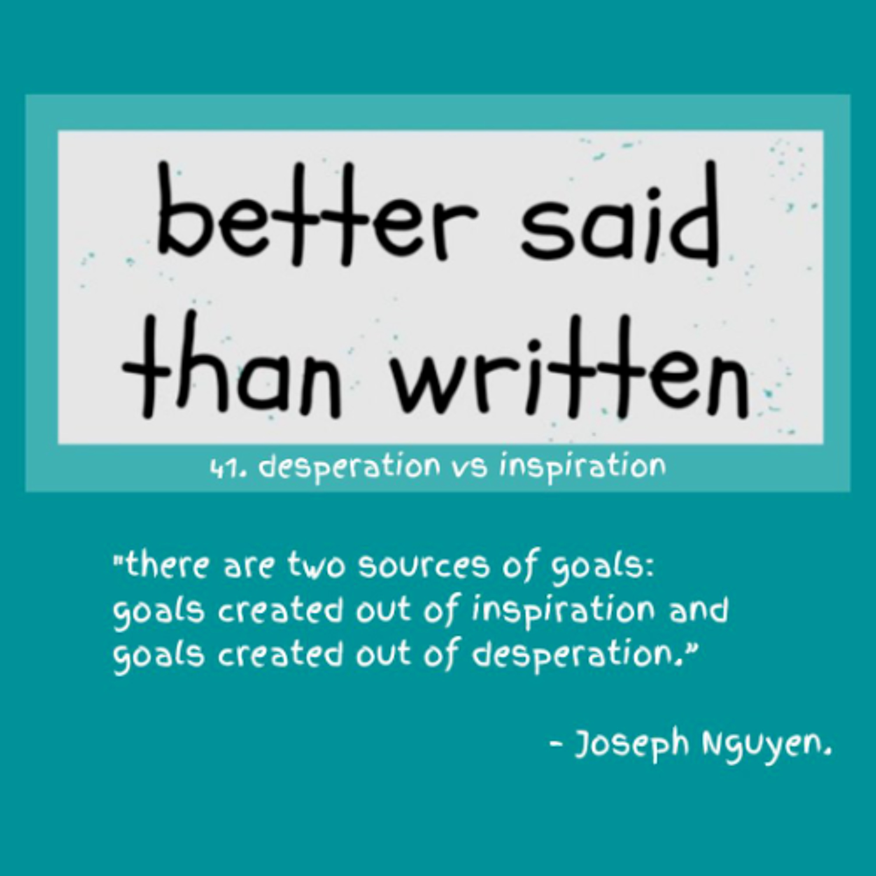 “There are two sources of goals: goals created out of inspiration and goals created out of desperation.”