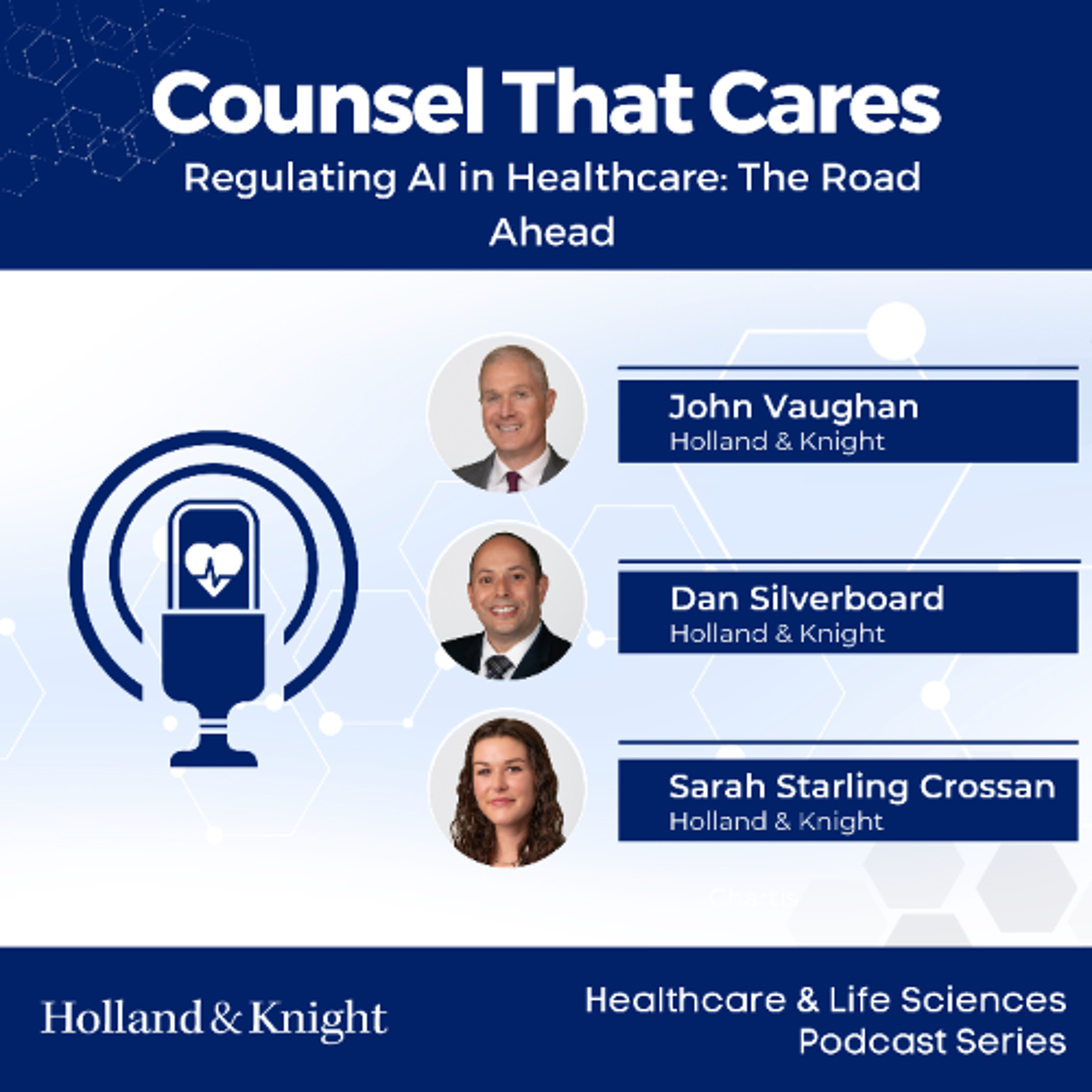 In this episode of "Counsel That Cares," Public Policy & Regulation attorney John Vaughan, Healthcare attorney Dan Silverboard and Public Affairs Advisor Sarah Starling Crossan discuss the rapidly evolving landscape of artificial intelligence (AI) regulation in the healthcare industry. They explore the complex interplay between federal initiatives, such as executive orders and agency rules, and the surge of state-level legislation shaping AI use in clinical practice, insurance and patient care. The conversation highlights key compliance challenges, including the need for AI governance programs, bias audits, data quality assurance and transparency with patients. Listeners will gain valuable insights into navigating disparate regulations across jurisdictions and the importance of staying informed to responsibly implement AI technologies in the healthcare sector.