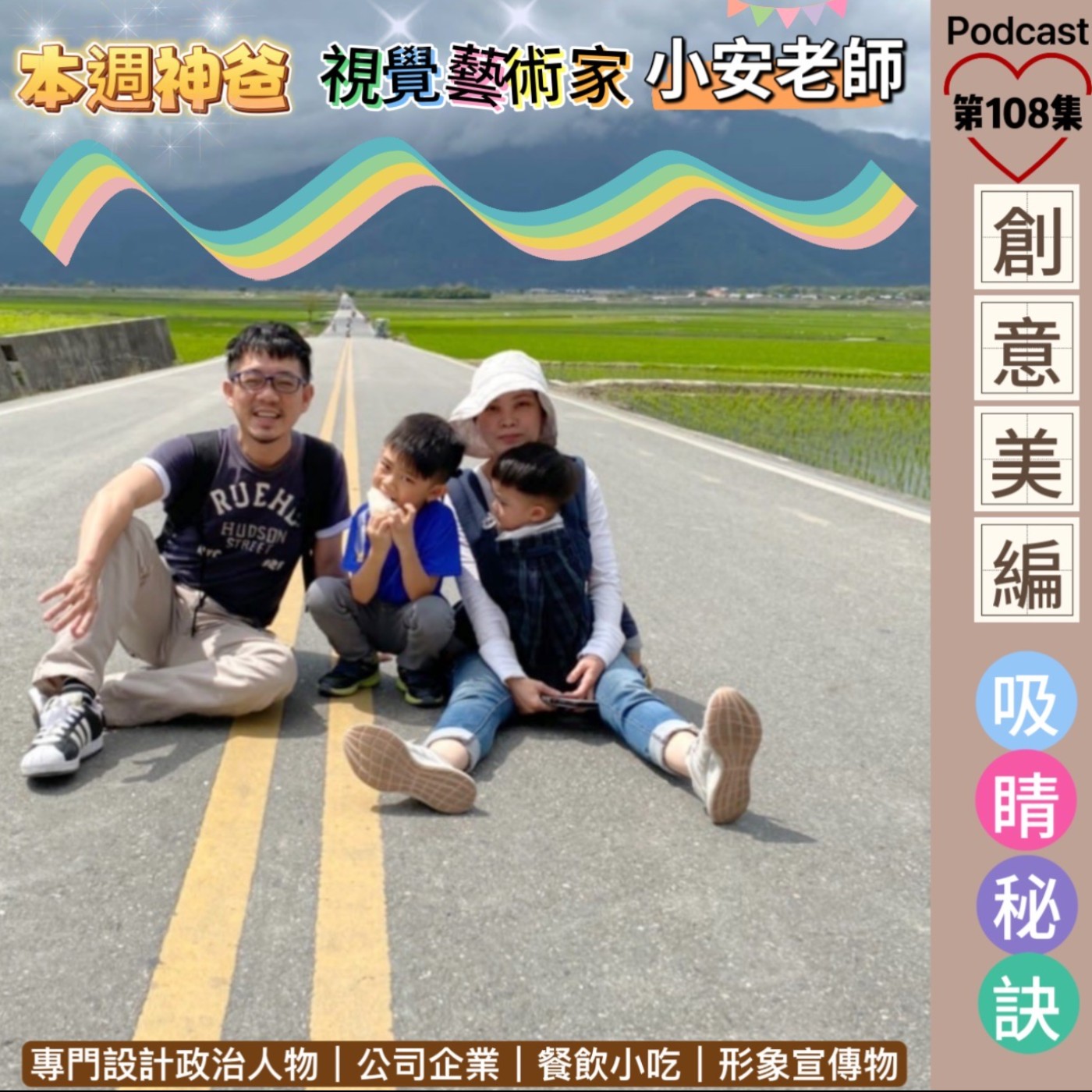 政治人物愛被他設計,他也愛設計政治人物…哈哈,從形象廣告就可以看見每位政治人物的個性及特色。還有各大大小小企業公司廣告宣傳物,甚至連拉麵、鹹酥雞…等小吃店,他都能抓住設計精髓,讓人看圖就聞到美味!這集就來聽聽藝術大師的故事喔。