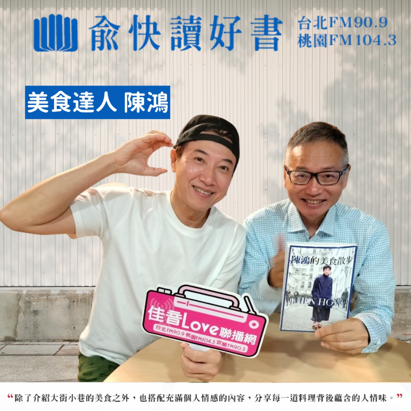 本集邀請到作者美食達人陳鴻親臨錄音現場,除了用新作品介绍大街小巷的美食之外,也搭配充滿個人情感的内容,分享每一道料理背後蘊含的人情味。