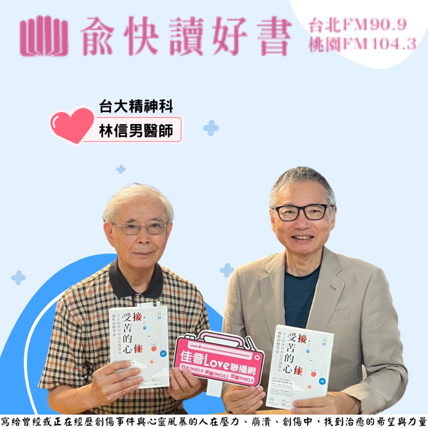 接住受苦的心這本書是紀錄林信男醫師行醫53以來的治療心得,他以獨特的「心理治療+靈性關顧」雙重療法,為許多不同宗教背景的人帶來心靈上的幫助,治好了無數顆破碎、失衡的心。