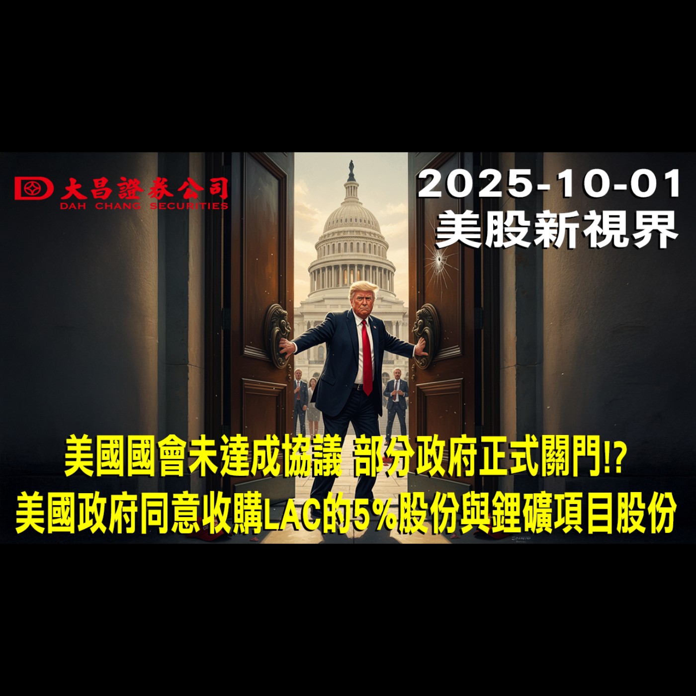 市場消息方面,美國國會在9月30日未能通過臨時撥款法案,使得聯邦政府自10月1日起正式關門,影響非國土安全、空中管制等非必要政府服務。這是自2018至2019年以來的首次關門,當時也是在川普的任期內發生。