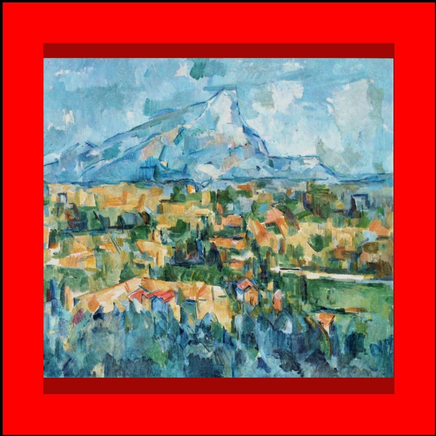 本期所要介紹的是典藏於美國費城博物館1904年晚年創作的《聖維克多山》,「聖維克多山」是塞尚不斷重複創作的作品,具有抽象理性和結構分析的作品。在塞尚心目中聖維克多山時,是一連串山脈、周圍天空、房屋、樹木等傳達的無限圖像,那些圖像以蒼茫的筆觸使繪畫的結構消失於無形。他利用畫筆與抹刀大量的潑弄油彩,將近處的森林、林間的房屋和田野、遠處的山巒和天空的浮雲,都進行體積上的綜合處理,尋找基本的形體結構與塗塊轉折,以遼闊的原野製造出深度,甚至把形象分解到一種難以體認的程度。