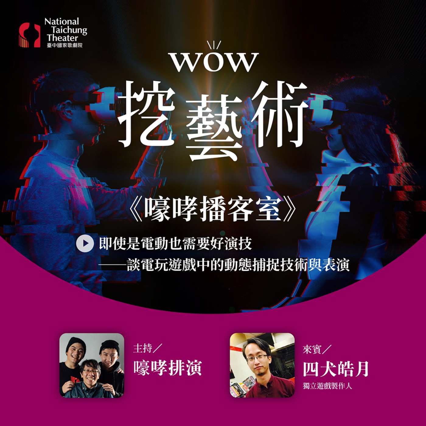 本集邀請獨立遊戲製作人四犬皓月,與熱愛打電動的嚎哮排演以自身玩遊戲的經驗聊起,分享遊戲開發的心路歷程,以及真人演員如何透過動態捕捉技術轉化成靈活的遊戲角色。