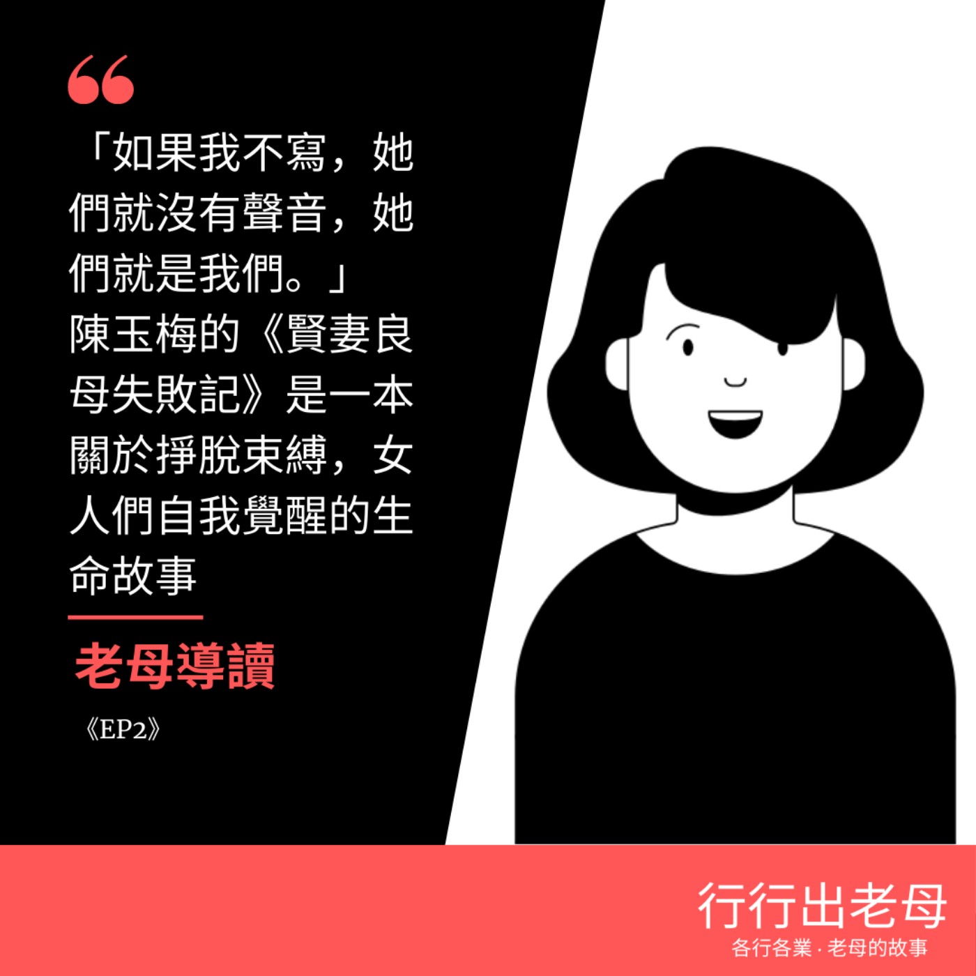 今天,老母導讀要讀的是陳玉梅《賢妻良母失敗記》裡的作者序,這是一本關於掙脫束縛,女人們自我覺醒的生命故事。