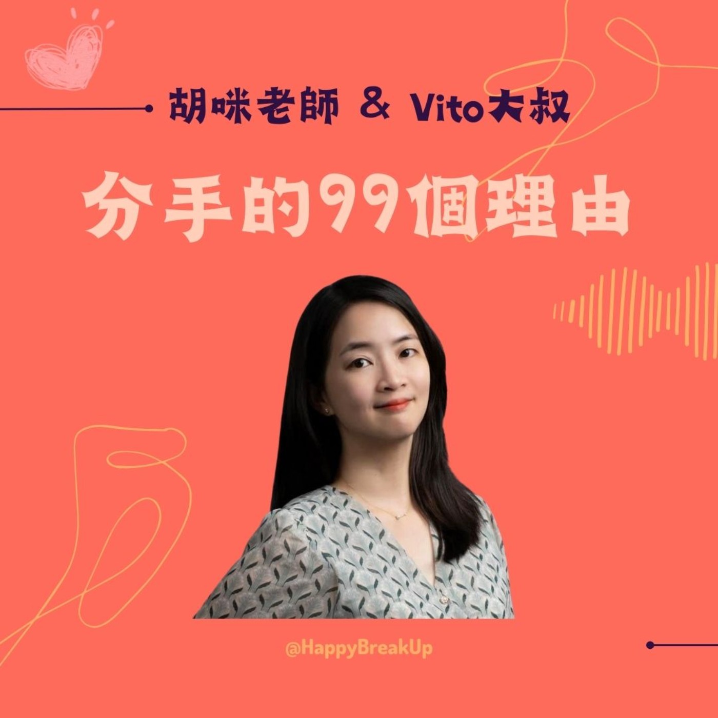 結婚一年後,旋即從一路順遂的人生,風暴式的經歷失業、負債、破產。從深淵向上的日子裡,製作了聚焦談論親密關係議題的Podcast頻道──《分手的99個理由》;期許和主持搭檔Vito大叔藉由節目陪伴面臨情感迷惘或低潮的人們。節目播出以來深受聽眾喜愛,多次於世界各地榮登Apple Podcast關係類節目前五名。