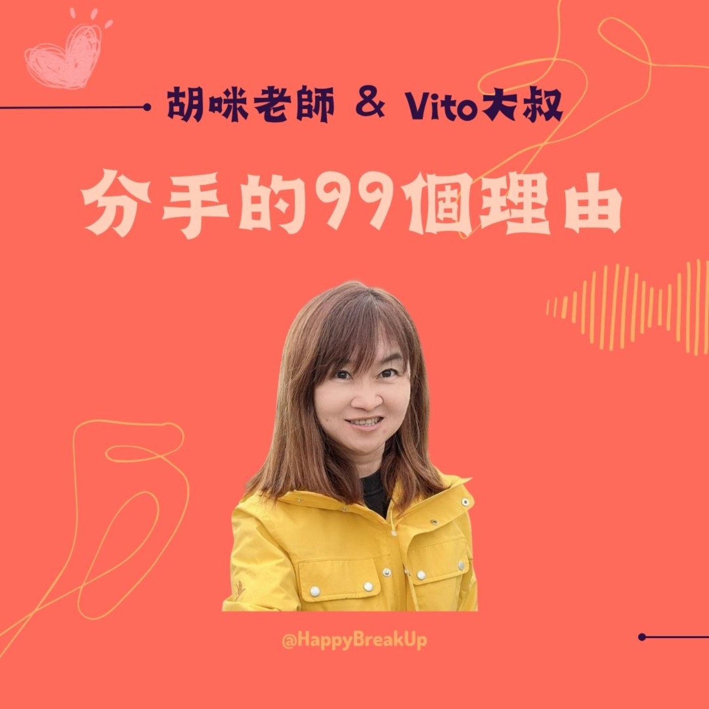 結婚一年後,旋即從一路順遂的人生,風暴式的經歷失業、負債、破產。從深淵向上的日子裡,製作了聚焦談論親密關係議題的Podcast頻道──《分手的99個理由》;期許和主持搭檔Vito大叔藉由節目陪伴面臨情感迷惘或低潮的人們。節目播出以來深受聽眾喜愛,多次於世界各地榮登Apple Podcast關係類節目前五名。