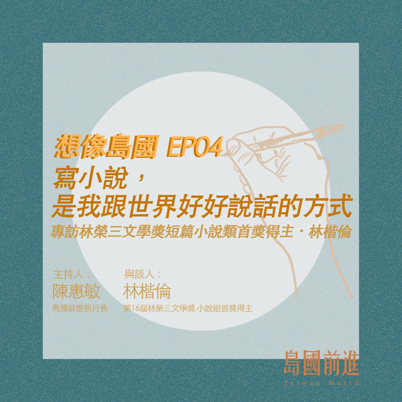 在這一集的【想像島國_EP04】,我們邀請了林楷倫來談談他為何創作,還有那些他還不敢碰觸的切膚題材。林楷倫筆下的主人翁,多是用體力勞動為生活奮力打拼的人們,用他的語言來說「就是我身邊的人們啊!」,所以他的小說裡充滿了感官,透過文字流洩出氣味、溫度和色彩。「我想要讓大家知道我們的生活」,林楷倫如是說。受過社會學訓練的他,深知「正確的說法」,但「生活,本來就是政治不正確的」。