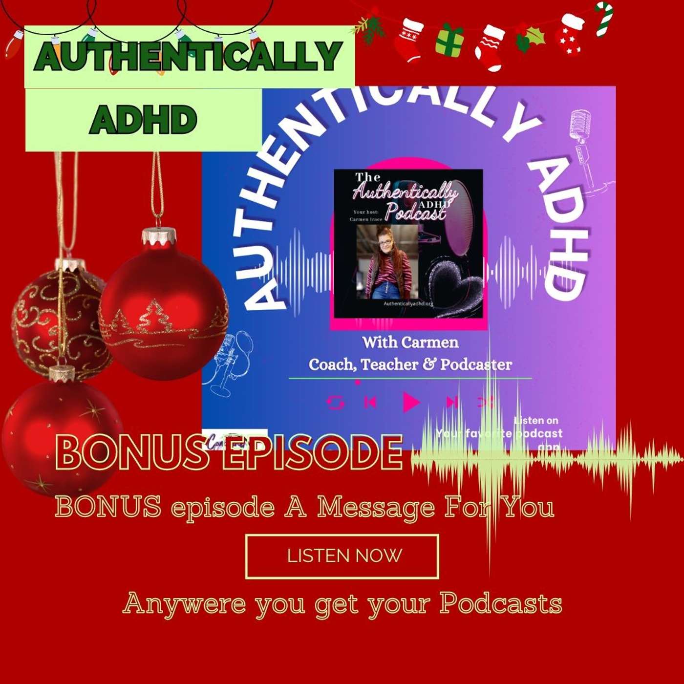 In this special bonus episode of Authentically ADHD by Podcaster Carmen Irace, I’m sharing a heartfelt message to help you navigate the holiday season with ease and authenticity. Whether you're juggling family gatherings, gift-giving stress, or sensory overload, this episode is packed with quick, actionable tips to maintain balance and joy during the festivities.