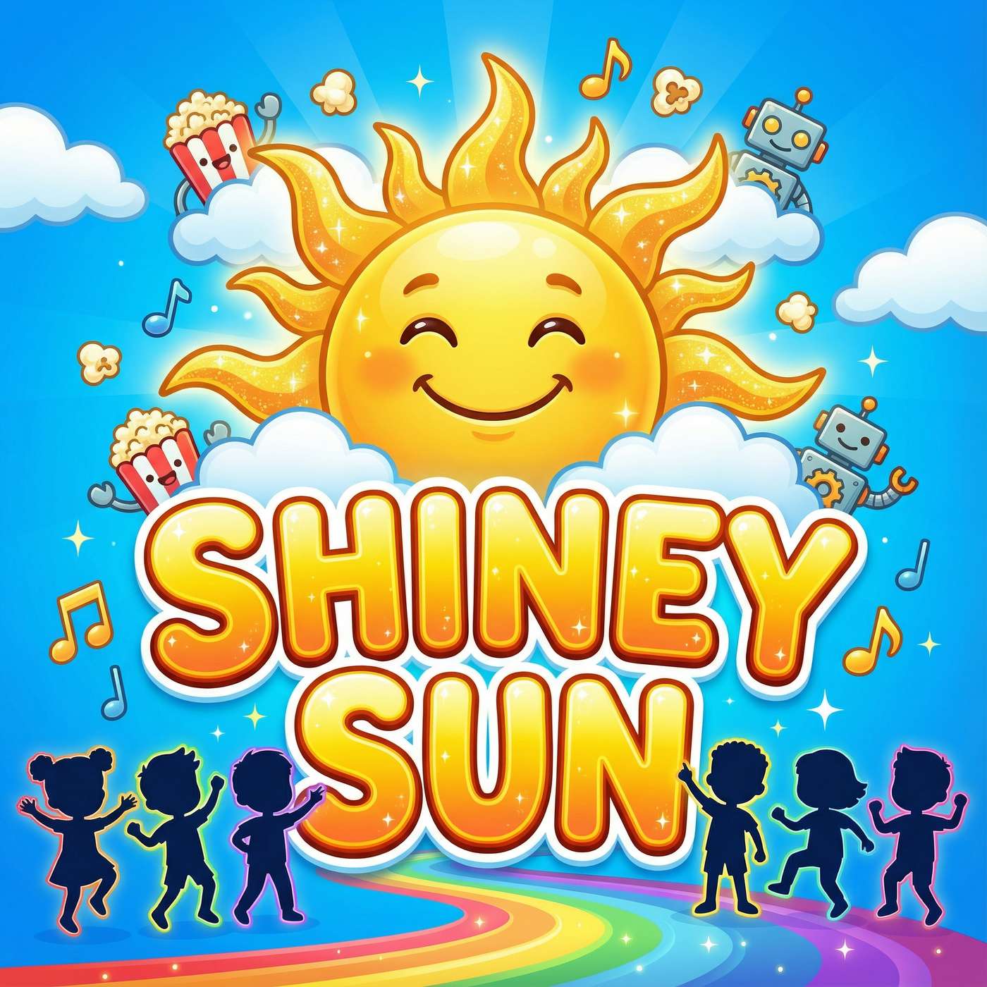 Bright, joyful kids dance banger. Robot breakdowns, popcorn with the crew, Numberblocks counting, sigma bounce energy.