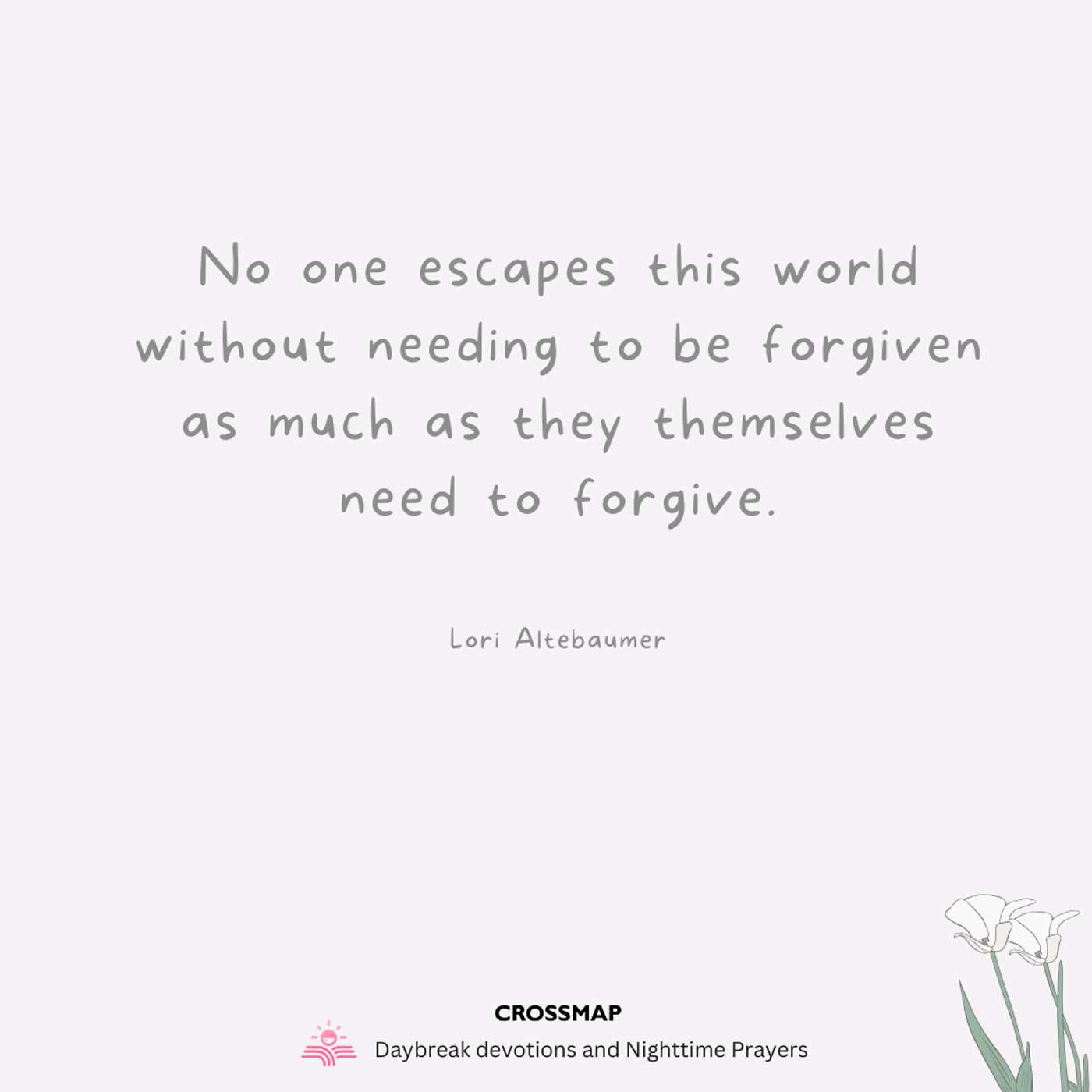 For if you forgive other people when they sin against you, your heavenly Father will also forgive you. But if you do not forgive others their sins, your Father will not forgive your sins. -- Matthew 6:13-15