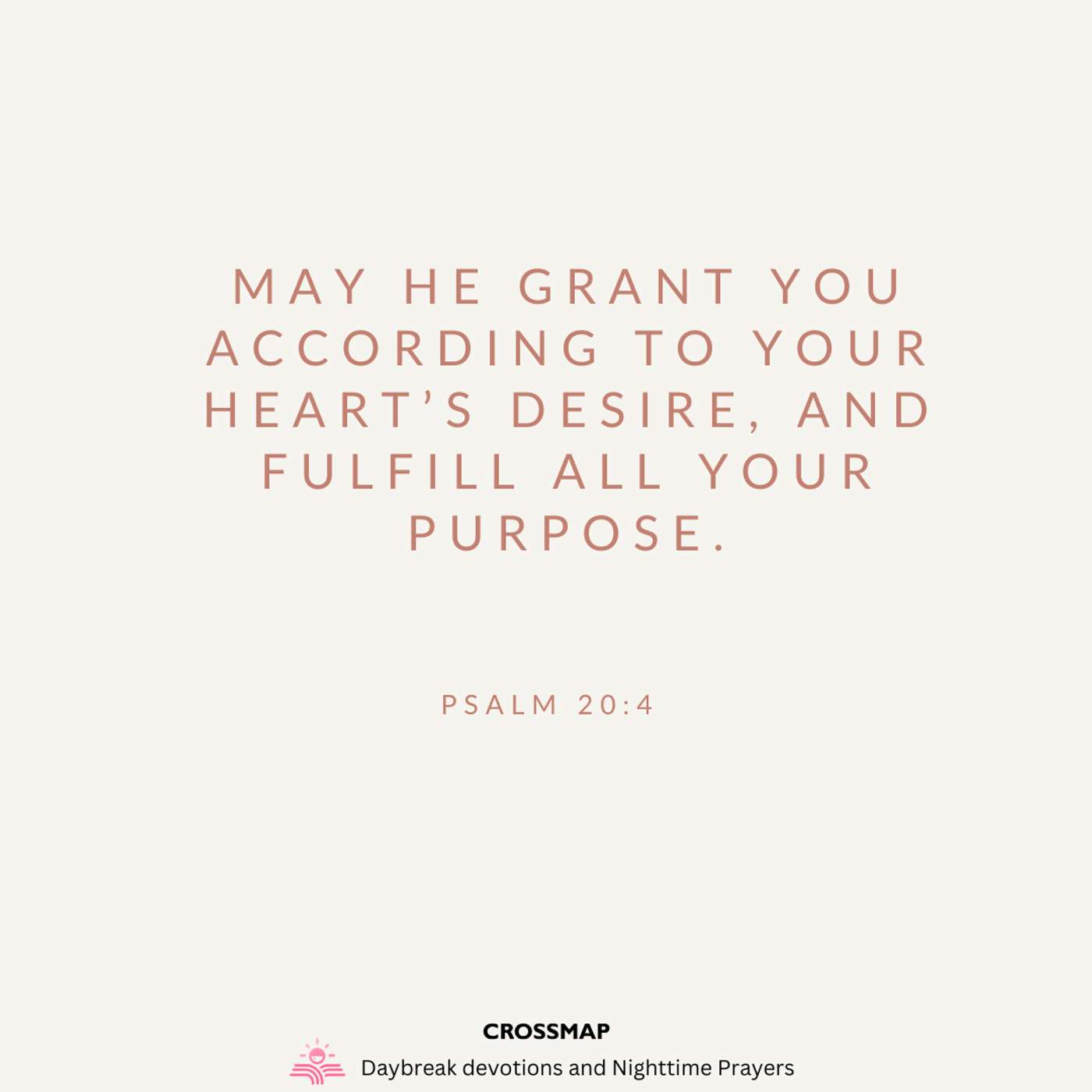 May He grant you according to your heart’s desire, And fulfill all your purpose. -- Psalm 20:4