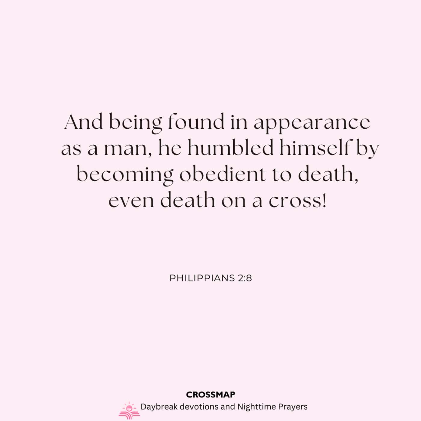 And being found in appearance as a man, he humbled himself by becoming obedient to death, even death on a cross! – Philippians 2:8