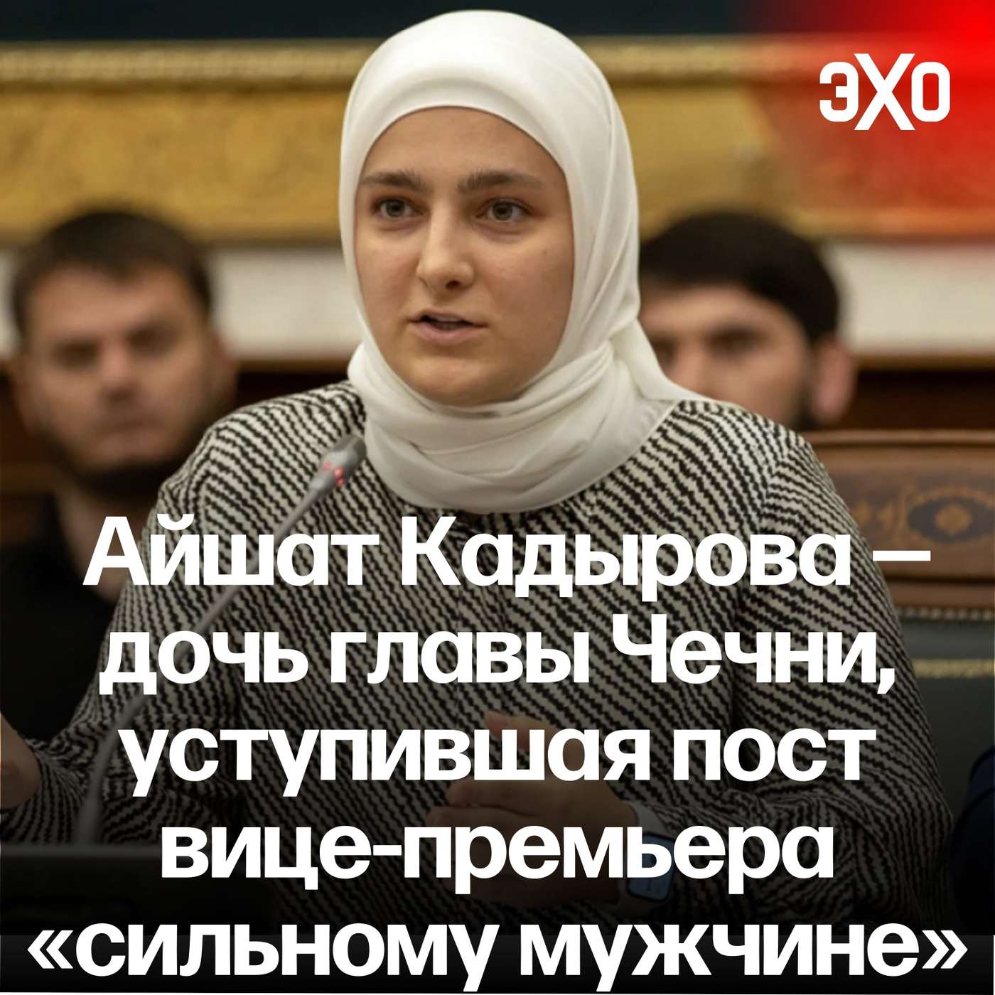 Полный текст рубрики на сайте «Эхо»: https://echofm.online/portret-dnya/ajshat-kadyrova-doch-glavy-chechni-ustupivshaya-post-vicze-premera-silnomu-muzhchine