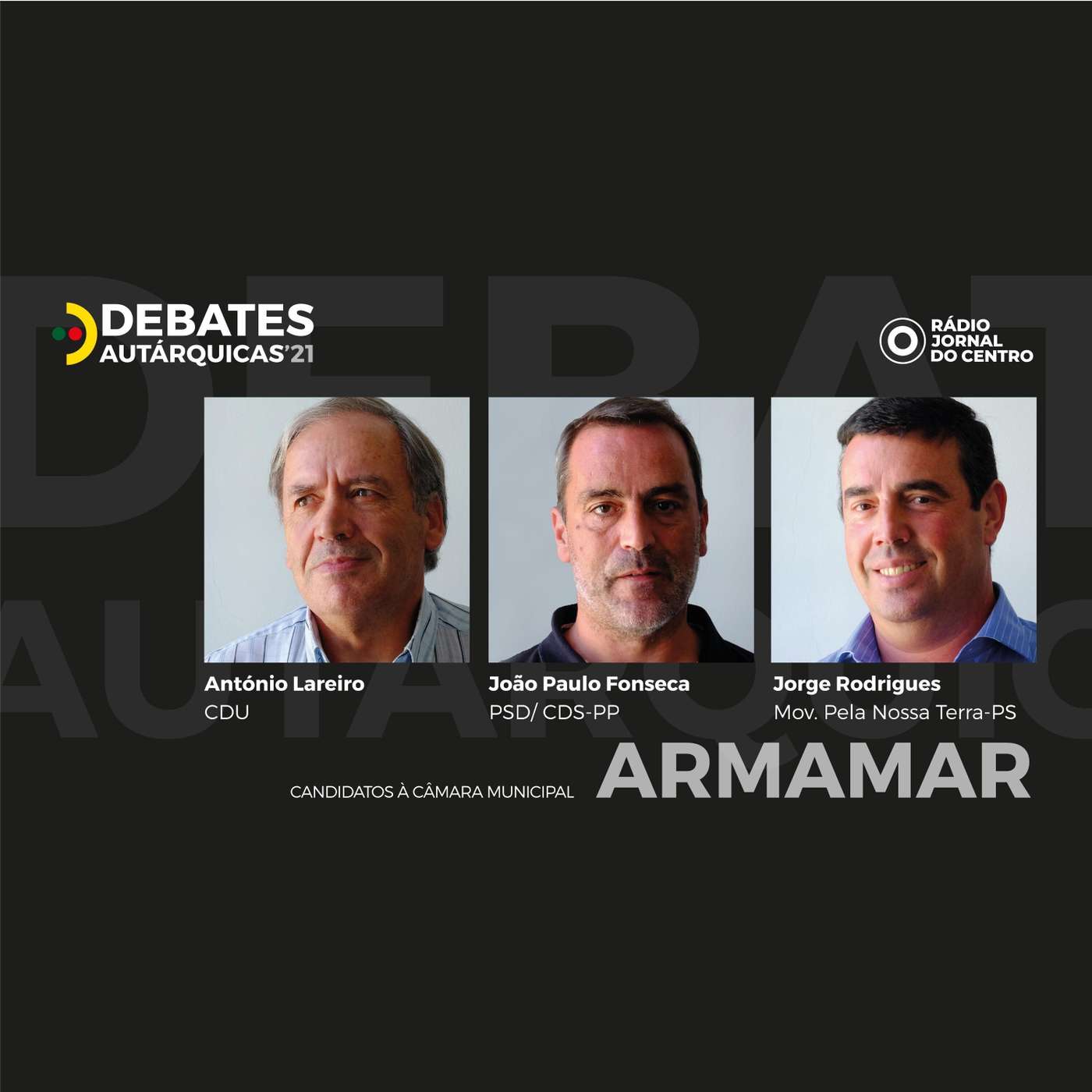 🧿 🗣 Debate entre candidatos à câmara municipal de Armamar, com as presenças de António Lareiro (CDU), João Paulo Fonseca (PSD-CDS) e Jorge Fonseca (Movimento Pela Nossa Terra-PS). Moderação da jornalista Sandra Rodrigues.