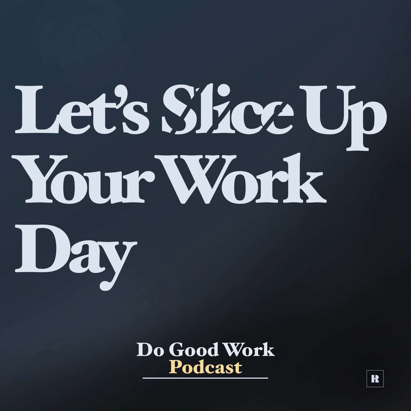 Listen to this episode of the #dogoodworkpodcast “Let’s Slice Up Your Work Day” where we’ll dive into: