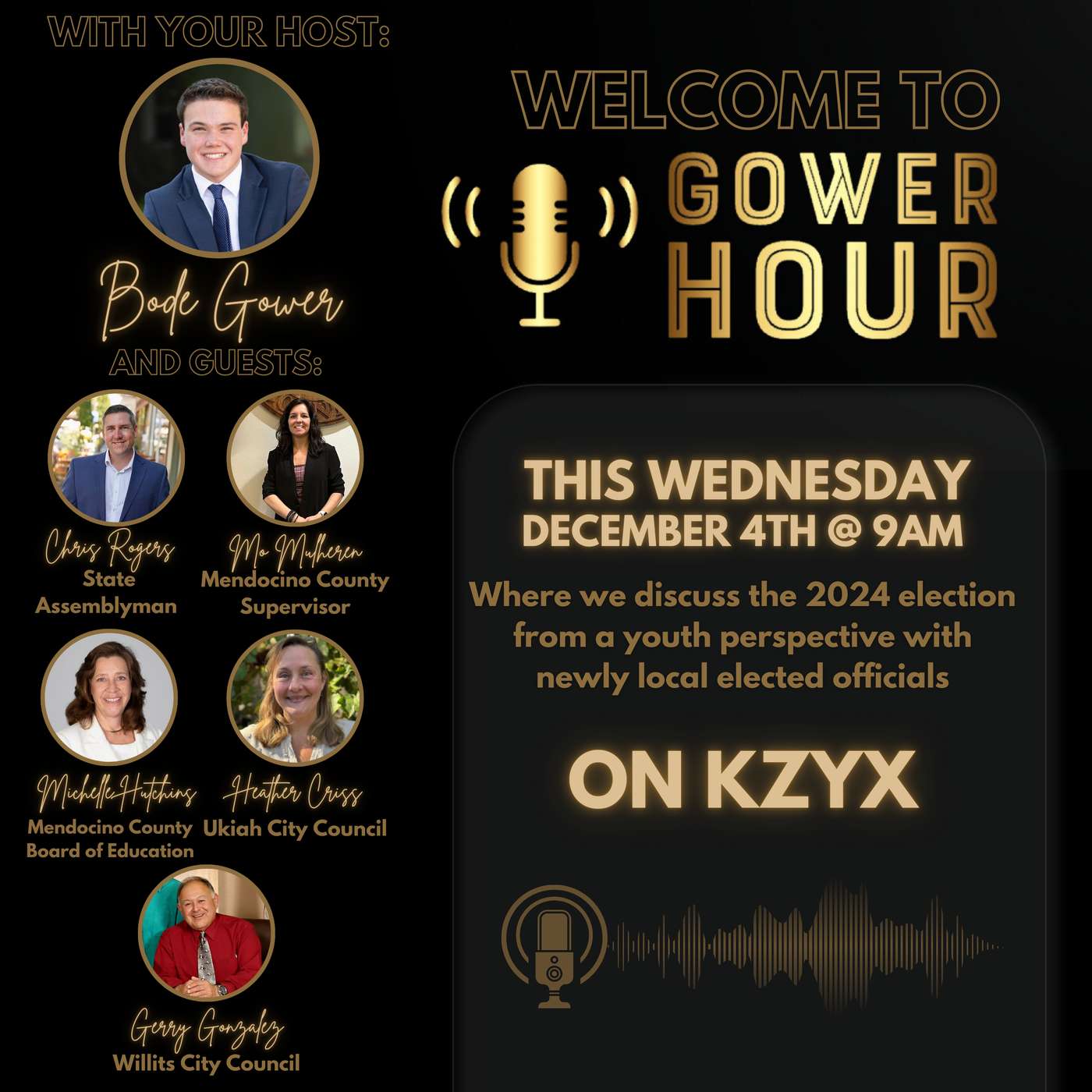 In this episode of Gower Hour, host Bode Gower sat down with elected officials from all across Mendocino County, sharing their plans and priorities for their communities. He'll also be offering his post-election analysis from a young person’s perspective, diving into one of the most consequential elections of our lifetime. Listen in as we bring you closer to today's politics through the lens of the next generation of leaders.