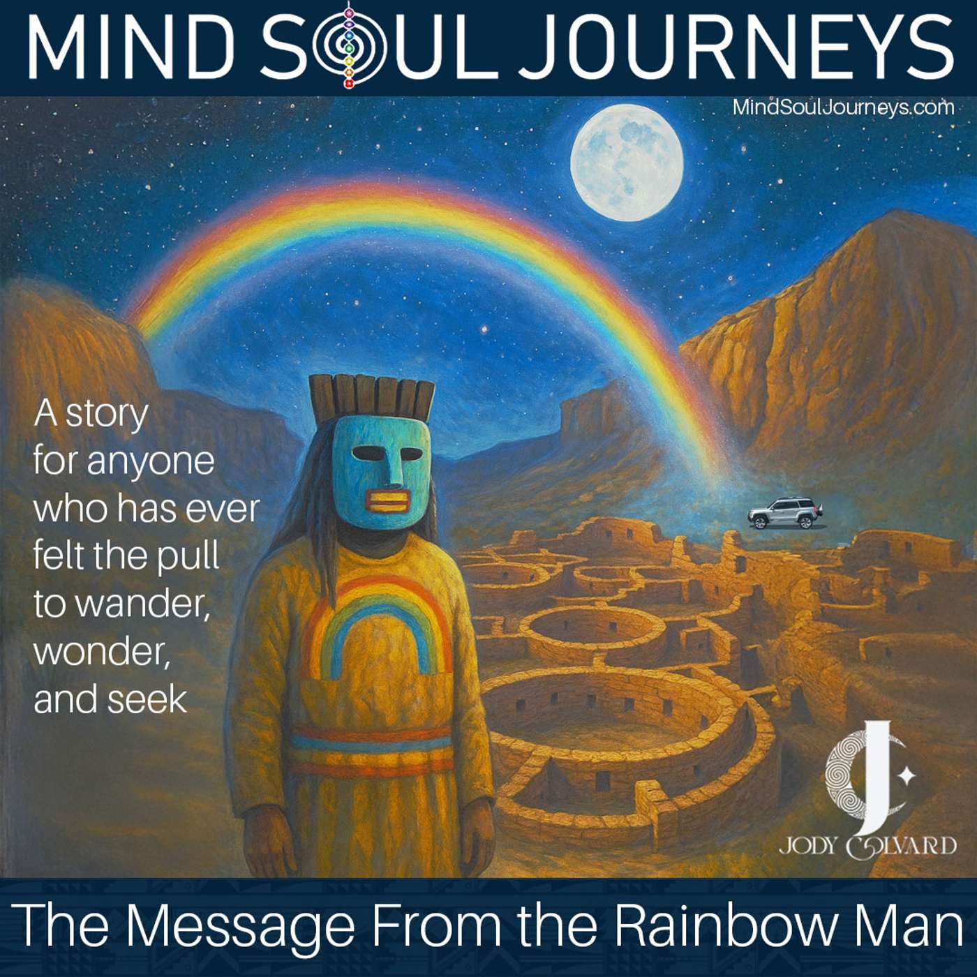 In this mystical episode of Mind Soul Journeys, Jody Colvard shares the true story of a spontaneous trip into the New Mexico desert, where ancient voices echo through Chaco Canyon, a night rainbow appears beneath a full moon, and a Hopi shaman delivers a message from beyond time.