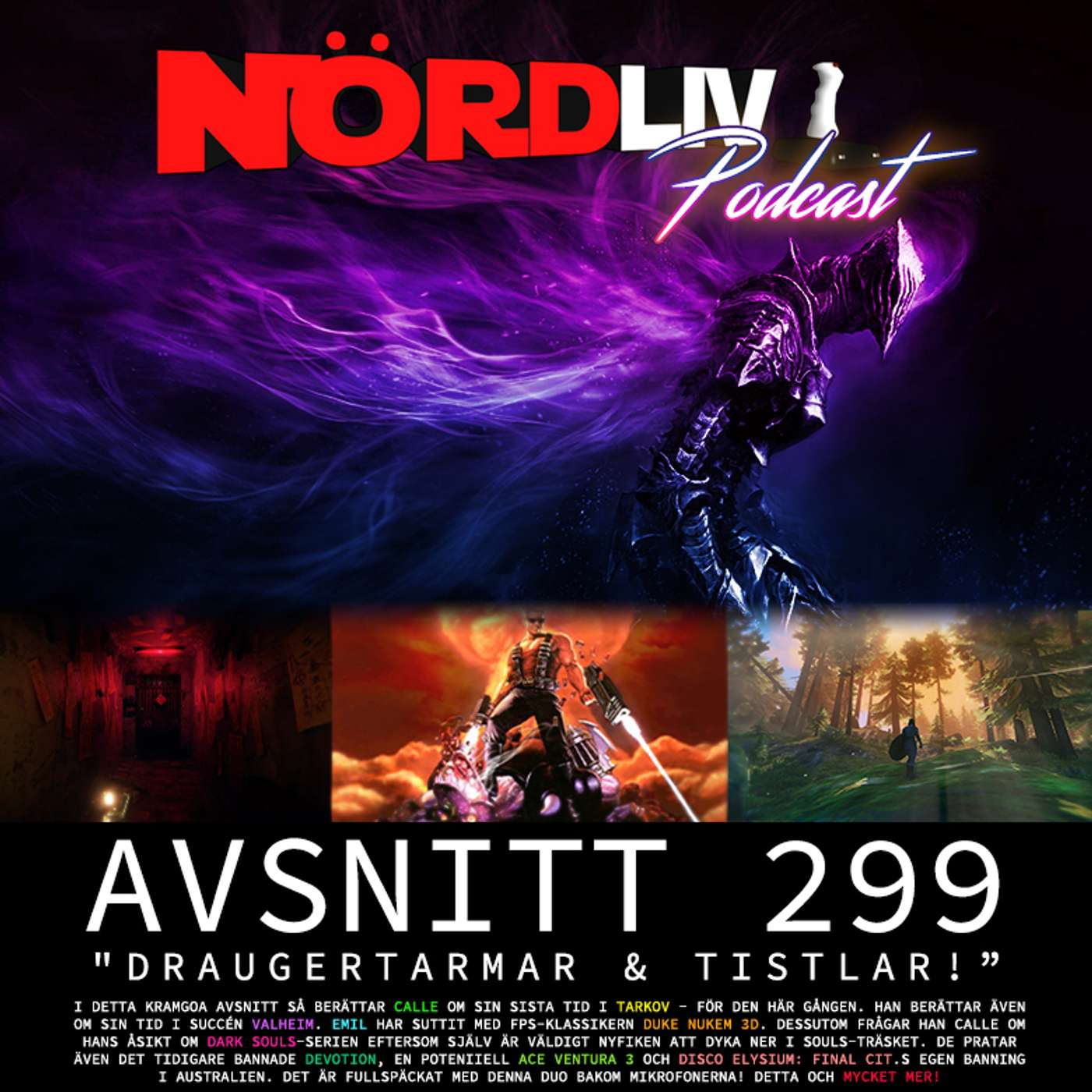Den dynamiska duon är tillbaka! Carl river för sista gången av de dragplåstret som hängt på både honom och podden med Tarkov där han nu är klar med spelet. Eller så pass "klar" man nu kan vara med Tarkov. Emil har tagit sig an Duke Nukem 3D och även varit inne och nafsat lite på Dark Souls genom Let's Plays. På nyhetsfronten pratar gänget om laddningstiderna i GTA Online, Disco Elysium blir utan klassificering i Australien samt att de Taiwanesiska skräckspelet Devotion ser dagens ljus igen.