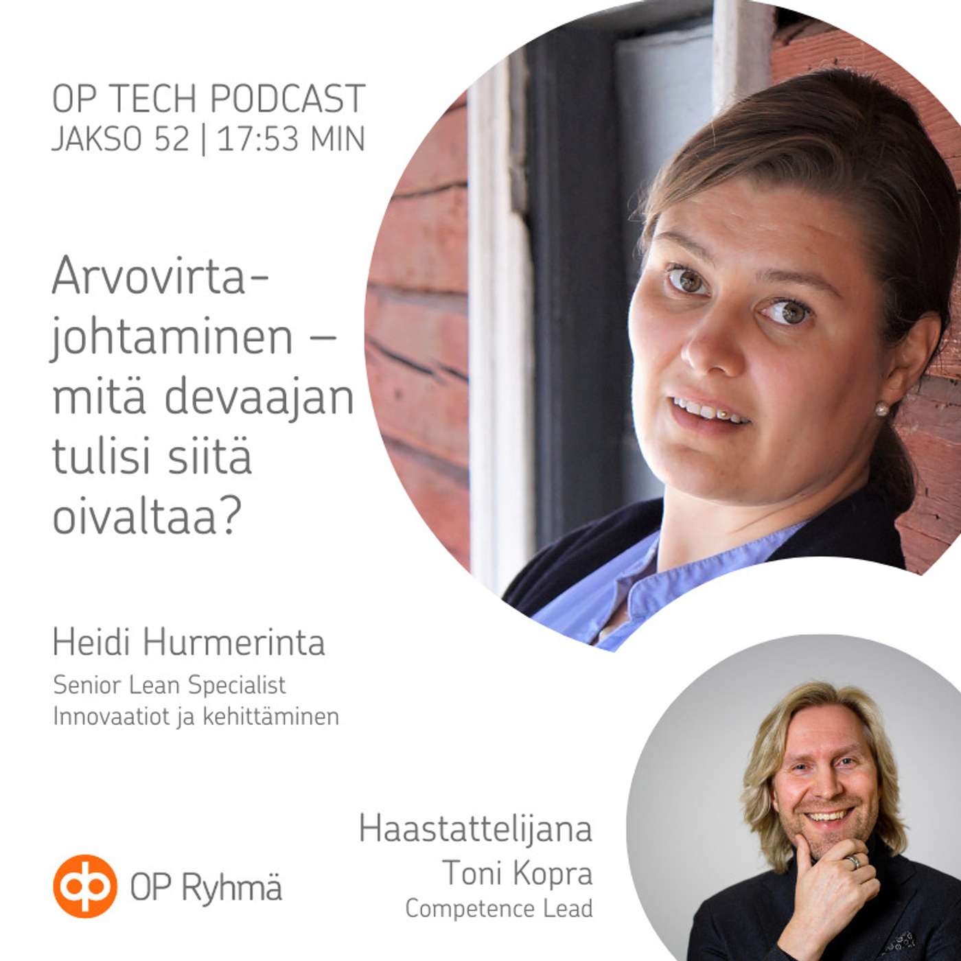 Tässä OP Tech Podcastin jaksossa Toni Kopra keskustelee OP:n Senior Lean Specialist Heidi Hurmerinnan kanssa arvovirroista ja niiden johtamisesta finanssialan esimerkein.