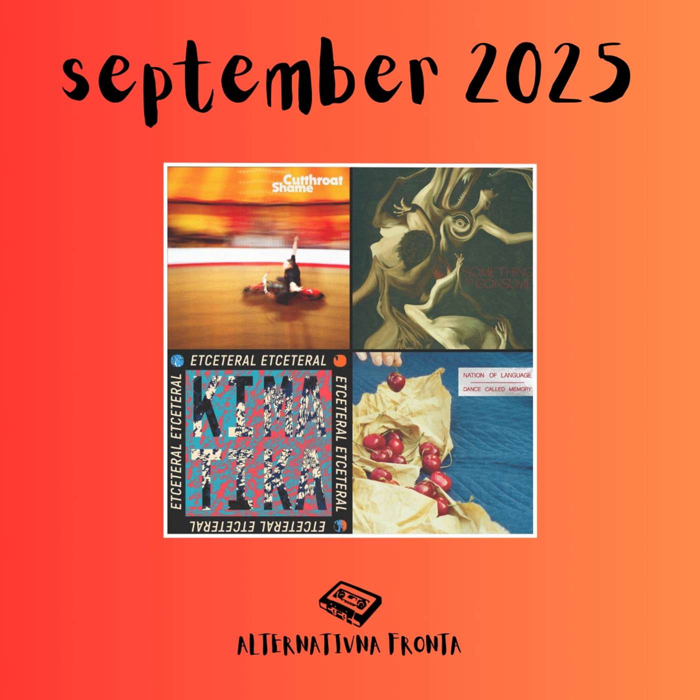 Skupaj z jesenskim deževjem je v Alternativno fronto prispel tudi nov paket glasbenih izdaj. V novi epizodi se poglabljamo v najnovejšo stvaritev britanskih post-pankerjev Shame, ki so ravnokar izdali album Cutthroat. Poti nas vodijo tudi preko Atlantika, v Teksas k alternativni metal skupini Die Spitz, ter v New York k indie pop draguljem Nation of Language. Izpostavljamo pa tudi domačo eksperimentalno jazz zasedbo Etceteral, ki je v septembru izdala svoje tretji studijski album Kimatika. Omenjene izvajalce poslušamo v oddaji, kot vedno pa lahko svoje zanimanje za novo alternativno glasbo potešite tudi z našo novo mesečno playlisto. Vabljeni k poslušanju!