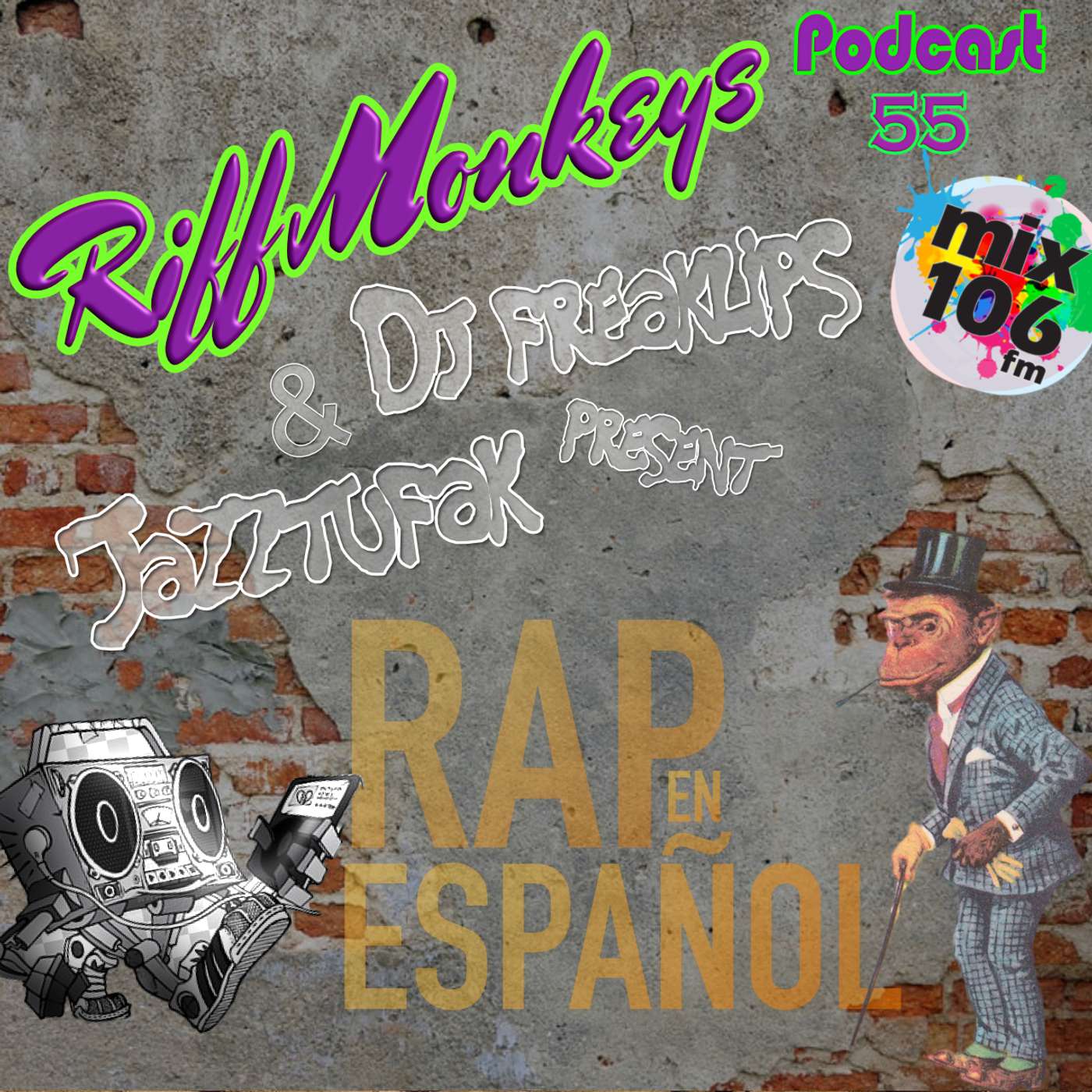 That's right I will be joined by the very talented Rapper and artist Jazztufak aka Pierro from Gran Canaria to show us some of his favourite and most inspirational hip hop tracks of all time. We are currently working on a new album that will be available soon so at the end of the show I will be debuting the first single From the album "Oriental Flow", so tune in tonight to Mix106fm for the latest Riff Monkeys podcast and come chill with us Ya'll.
