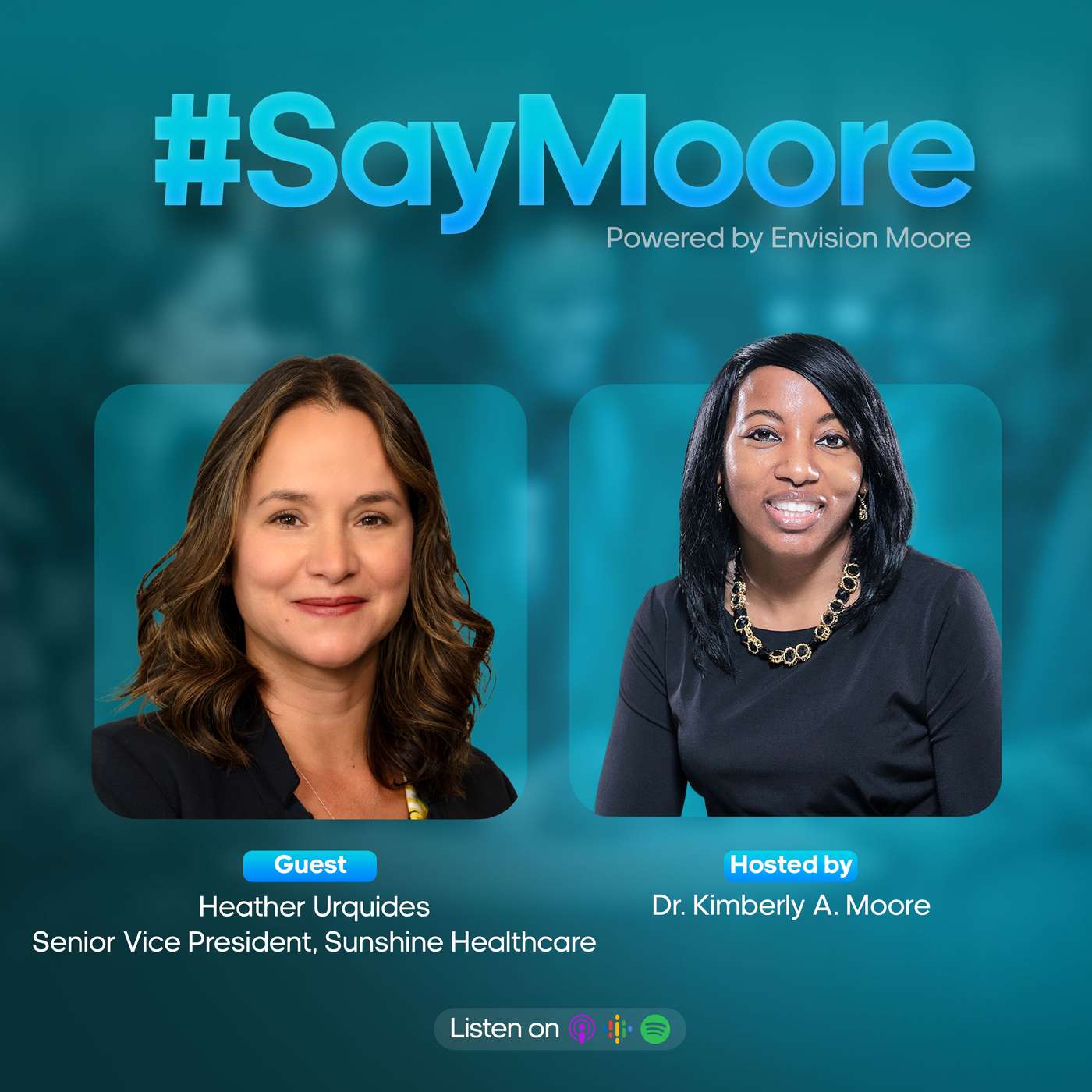 Welcome to 2nd episode of #SayMoore, Breaking the Mold Empowering Women to Rise Together. Joining me is Heather Urquides, Senior Healthcare Executive with Sunshine Health. Together we'll dive deep into the importance of self-reflection, finding your voice, women supporting women, and embracing collaboration as the cornerstone of success. How did she do it? I’m glad you asked because Heather will share firsthand experiences and practical insights on why being in the right seat, on the right bus at the right time matters. It makes no difference whether you're navigating the corporate ladder, planning a career move or you’re just starting your first job, this episode offers inspiration, guidance, and most of all authenticity. Tune in as we celebrate the power of us and how we can chart a course towards a more empowered future. Join the conversation and discover the wisdom that propels women to succeed and persevere. Connect with us on Apple, Spotify, Amazon Music and Audible, YouTube. Be sure to like, share and SUBSCRIBE!