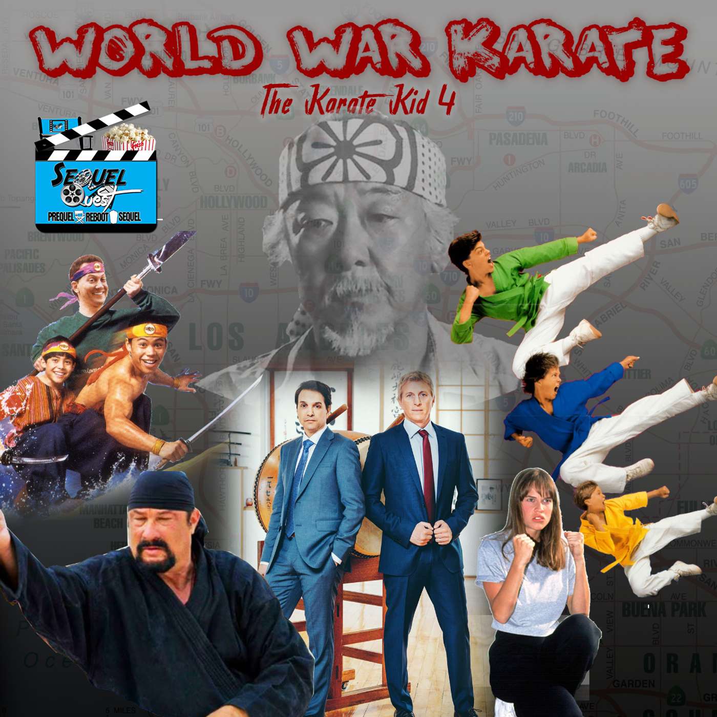 That’s the mission of your SequelQuest crew of Adam, Jeff and Jeramy in this episode of the podcast. Returning after a 2 month hiatus, your hosts have been working on their crane kicks and drum techniques to get in peak movie pitching form. What could the plot of The Karate Kid Part 4 possibly be? Maybe a touching tale of long lost Miyagi relatives? Perhaps an early prediction for a possible storyline in Cobra Kai season 2? There might even be a mash-up film that brings all your movie martial arts characters like the 3 Ninjas and Surf Ninjas into a wild post-apocalyptic gang war flick if you’re lucky.