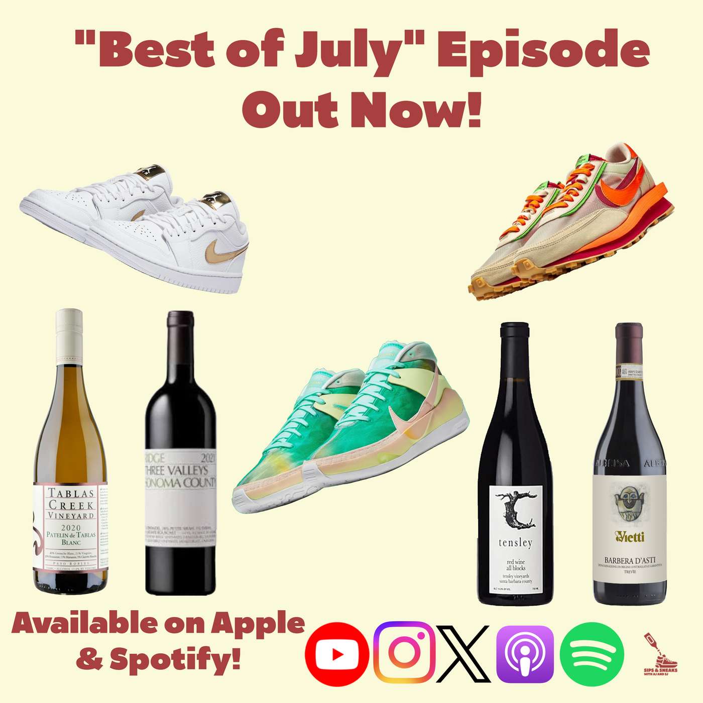On this episode of Sips and Sneaks, its another mash up episode, a recap of the best of July. This episode will feature different wines, sneakers, ATZs and some rants from the past month. Some stuff you might have already heard, other stuff might be new so feel free to bounce around. The two will be back to kick off August with a brand new episode on Friday. As always, please Like and Subscribe!